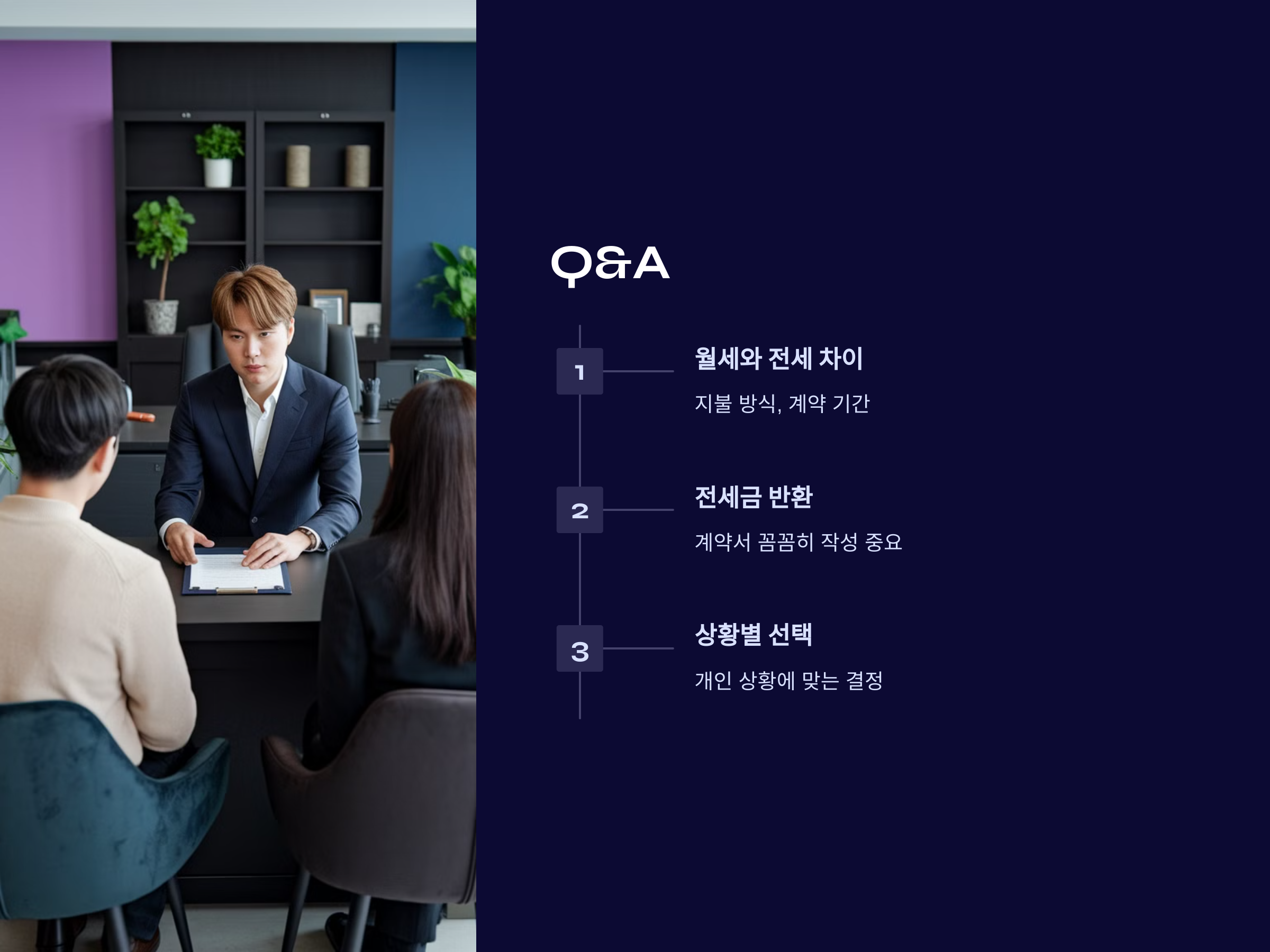 1. 월세와 전세의 주요 차이점은 무엇인가요?