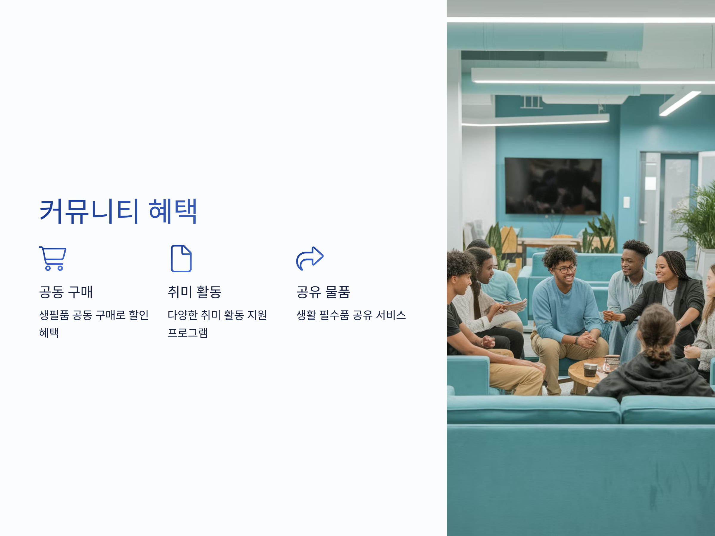 청년주택 장기거주자라면 커뮤니티 혜택을 최대한 활용할 수 있습니다. 입주민 커뮤니티를 통해 공동 구매 할인, 취미 활동 지원, 공유 물품 이용 등 생활비 절약은 물론, 네트워크 형성에도 도움이 됩니다. 또한 장기거주자는 이사나 물품 이전 등의 무료 지원 서비스도 우선적으로 받을 수 있어 큰 편의성을 제공합니다. 이런 지원이 점점 확대되면서 청년주택의 인기는 더 높아질 전망입니다.