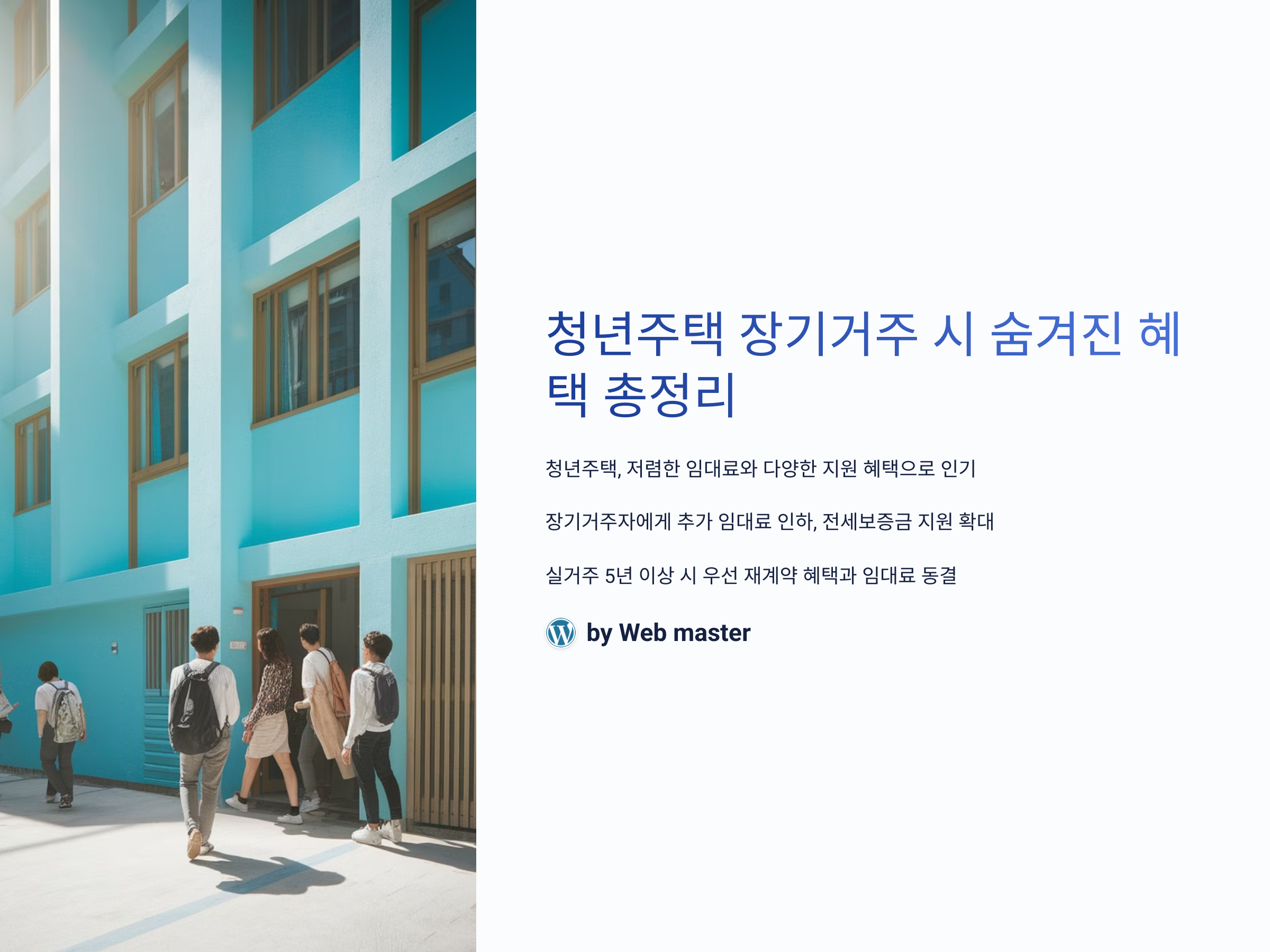 최근 서울을 중심으로 청년주택에 대한 관심이 폭발적으로 증가하고 있습니다. 특히 전월세 부담이 치솟으면서 안정적인 거주공간을 찾는 청년들이 많아졌죠. 청년주택은 비교적 저렴한 임대료와 다양한 지원 혜택으로 청년층에게 인기를 끌고 있는데, 특히 장기거주를 계획한다면 숨겨진 혜택을 놓치지 말아야 합니다. 2024년 이후부터는 정부가 청년주택 장기거주자에게 추가적인 임대료 인하 혜택과 전세보증금 지원 프로그램을 확대한다고 발표했으며, 이에 따라 실거주 5년 이상 시 우선 재계약 혜택과 임대료 동결 혜택까지 예상되고 있습니다. 이외에도 장기거주자는 주거복지 포인트 적립, 취업 연계 프로그램 우선권, 문화 공간 무료 이용 혜택 등 다양한 이점이 있습니다. 해당 글을 통해 청년주택 장기거주시 꼭 알아야 할 유리한 점을 세세하게 안내드리니 끝까지 확인해보세요.
