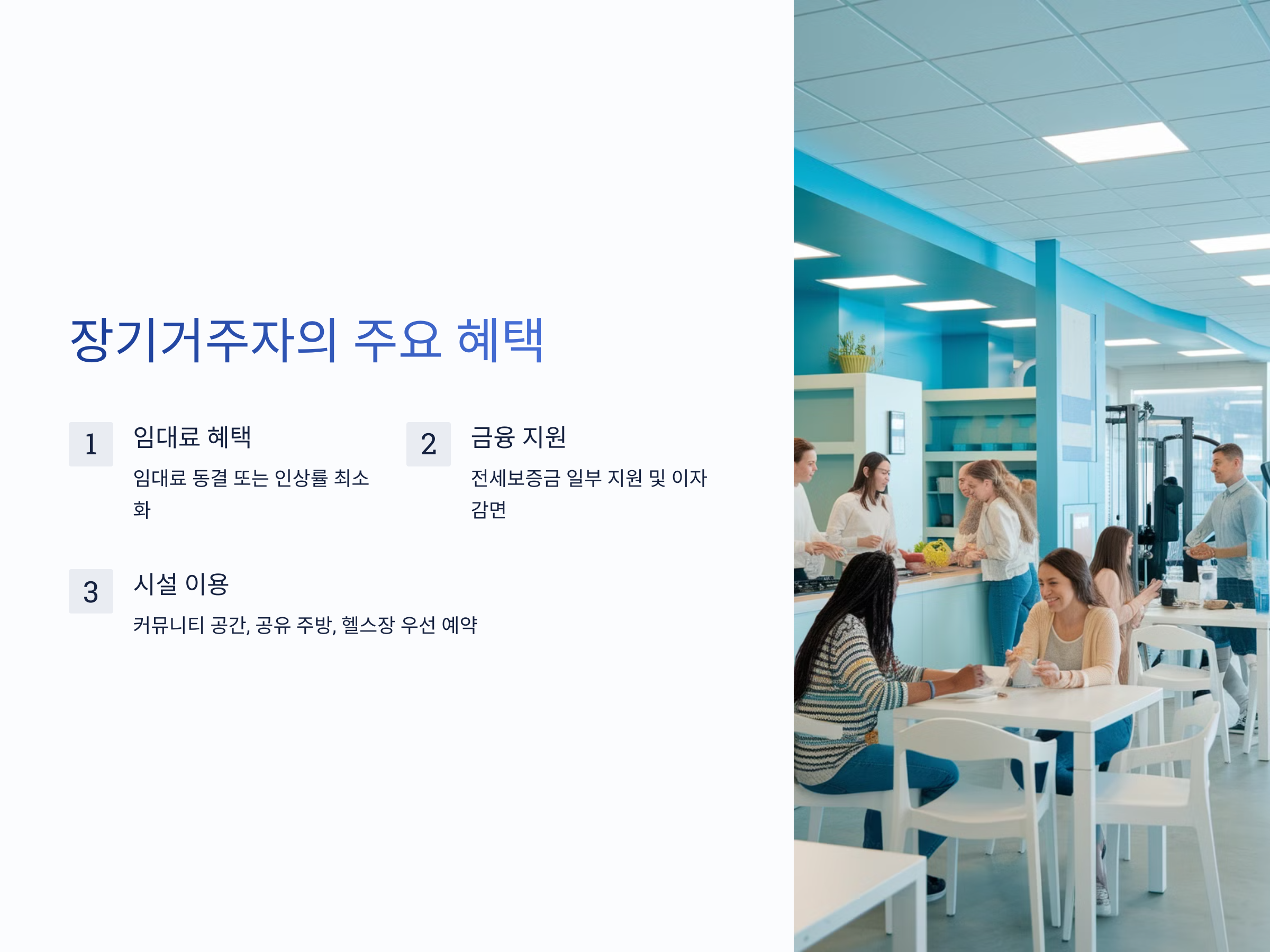 청년주택에 입주하면 단기거주보다 장기거주할수록 확실히 이득입니다. 우선 가장 눈에 띄는 부분은 임대료입니다. 보통 2년마다 계약을 갱신하게 되는데, 장기거주자에게는 임대료 동결 또는 인상률을 최소화해주는 정책이 적용됩니다. 특히 5년 이상 거주한 사람에게는 전세보증금 일부를 지원하거나 이자를 감면해주는 혜택까지 주어지는 경우도 있습니다. 게다가 장기거주자는 커뮤니티 공간, 공유 주방, 헬스장 등 청년주택 내 시설을 우선적으로 예약할 수 있는 권한도 생기며, 이는 생활의 질을 크게 높여줍니다.