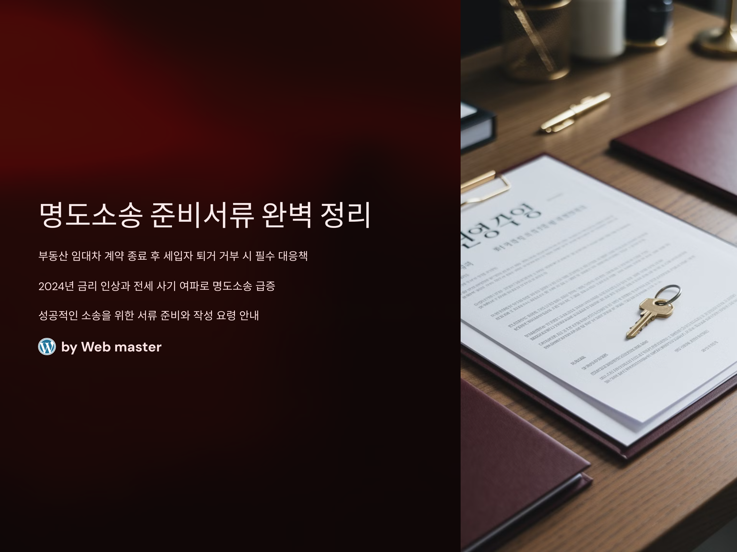 부동산 임대차 계약이 끝났음에도 불구하고 세입자가 퇴거를 거부하거나 무단 점유를 계속하는 경우, 명도소송은 필수적인 대응책입니다. 최근 부동산 시장이 불안정해지며 계약 종료 후에도 점유권 분쟁이 빈번하게 발생하고 있습니다. 특히 2024년 이후 금리 인상과 전세 사기 사건의 여파로 명도소송 사례가 급증하고 있으며, 이에 따른 서류 준비의 중요성이 더욱 강조되고 있습니다. 명도소송은 절차가 복잡하고 준비서류가 방대하기 때문에, 사전에 정확하게 준비하지 않으면 소송에서 불리한 결과를 맞을 수 있습니다. 이 글에서는 명도소송의 성공률을 높이기 위해 반드시 갖추어야 할 준비서류와 작성 요령을 상세히 안내합니다. 최신 판례와 트렌드까지 반영해 명도소송 준비에 완벽을 기할 수 있도록 돕겠습니다. 이 글을 끝까지 읽고 대비한다면 예상치 못한 법적 분쟁에서도 당황하지 않고 대응할 수 있습니다.