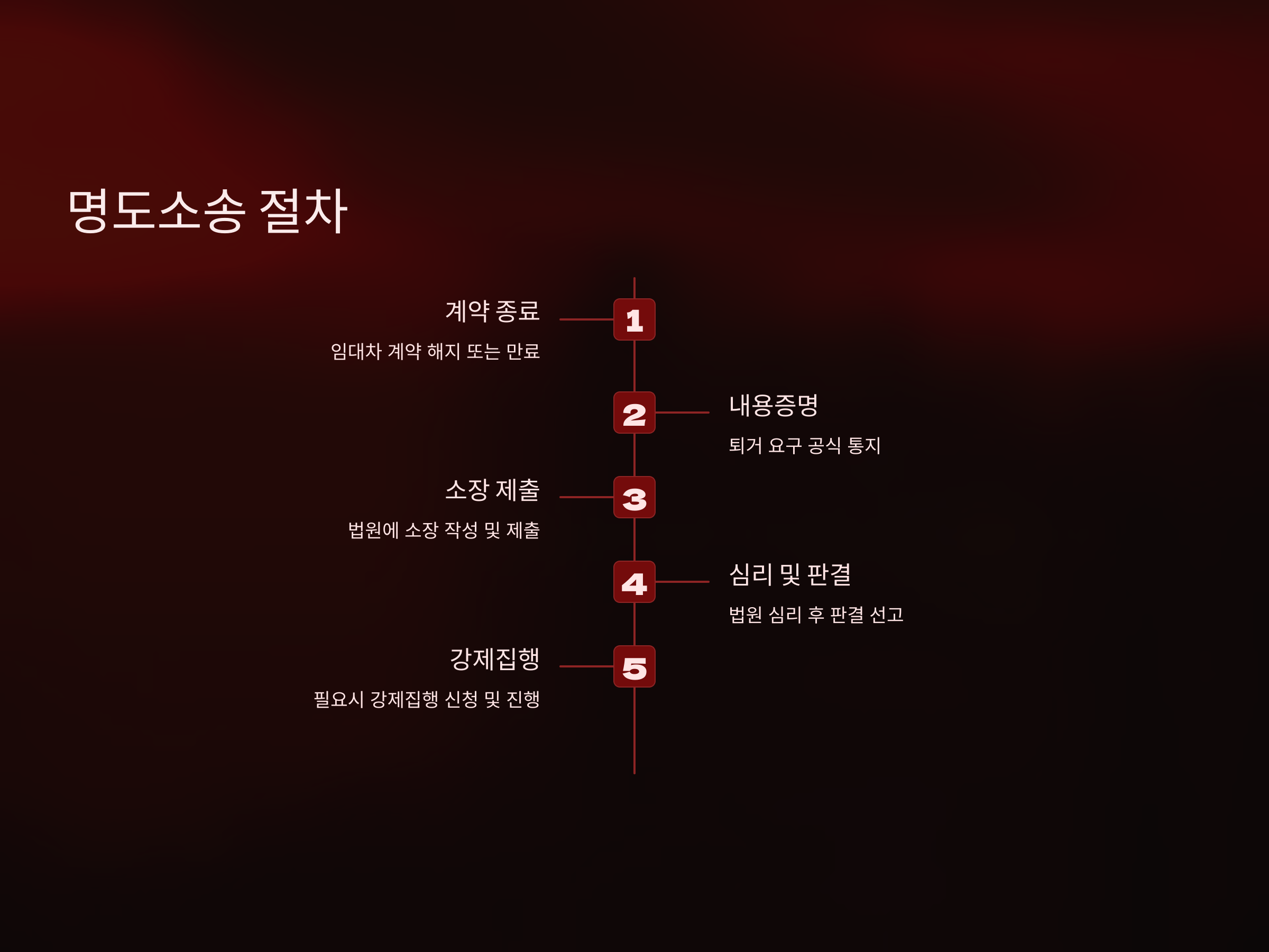 명도소송은 일반적으로 다음과 같은 순서로 진행됩니다: