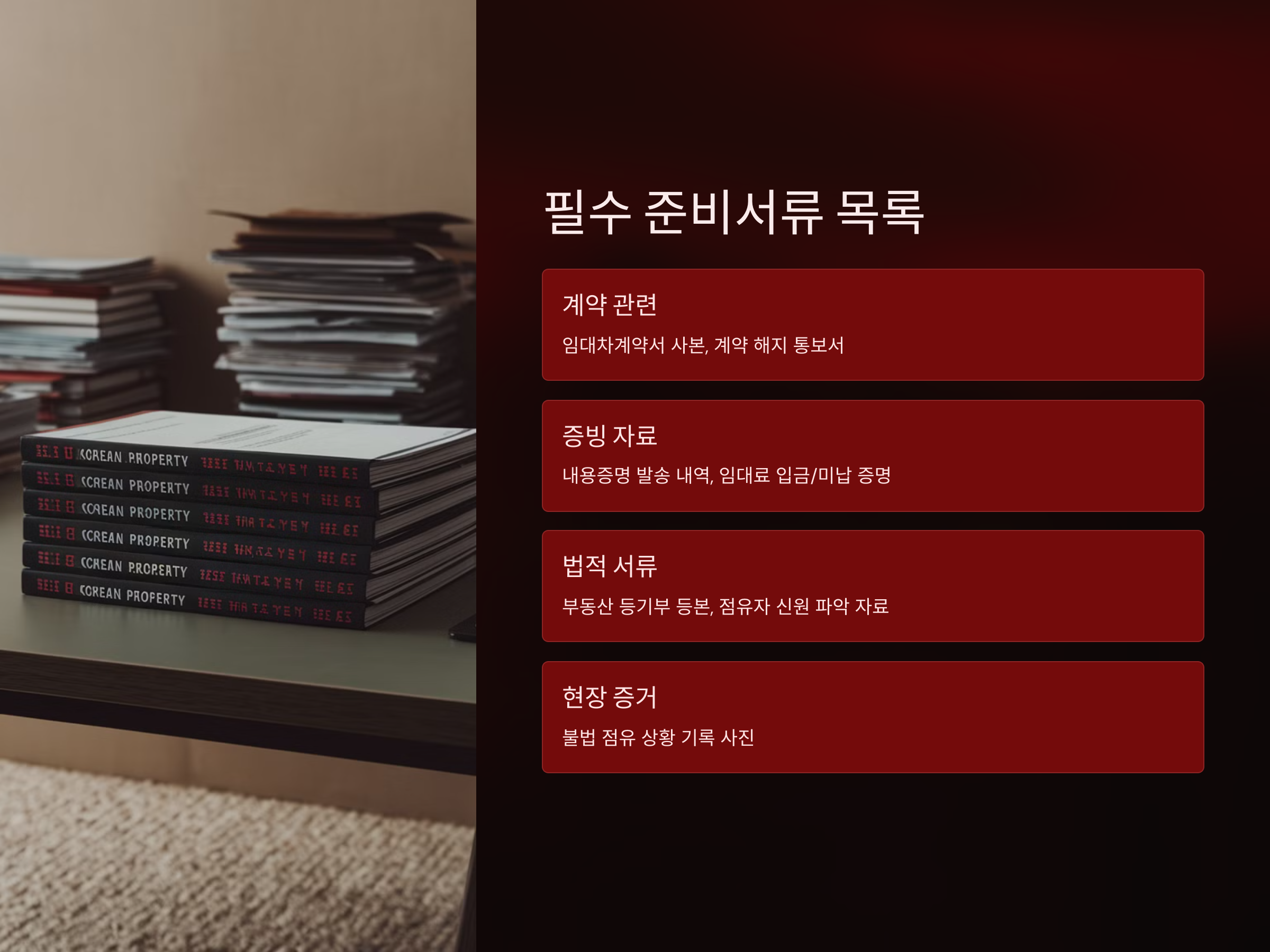 명도소송을 준비할 때 가장 중요한 것은 필요한 서류를 빠짐없이 준비하는 것입니다. 일반적으로 필요한 서류는 다음과 같습니다.