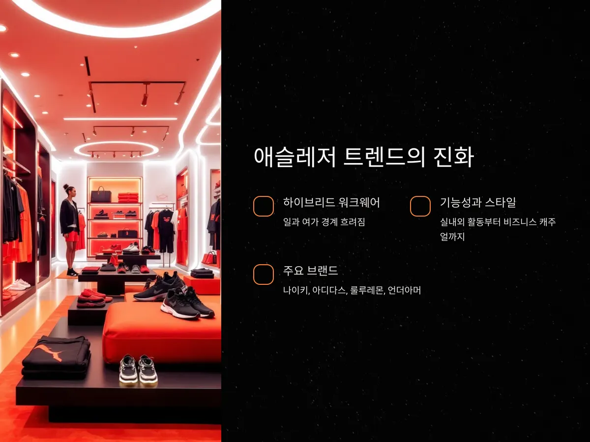 요즘은 단순한 기능성을 넘어서, 출퇴근 룩이나 일상복으로도 활용 가능한 스포츠웨어가 각광받고 있습니다. 특히 이직을 준비하거나 새로운 환경에서 나만의 이미지를 구축하려는 분들에게는, 첫인상을 좌우할 수 있는 옷차림이 중요합니다. 최근에는 애슬레저 트렌드가 강화되면서, 스포츠웨어가 실내외 활동은 물론 비즈니스 캐주얼까지 소화 가능한 방향으로 진화하고 있습니다. 나이키, 아디다스, 룰루레몬, 언더아머 등 브랜드들도 이를 반영해 기능성은 물론 스타일을 갖춘 제품들을 잇달아 출시하고 있습니다.