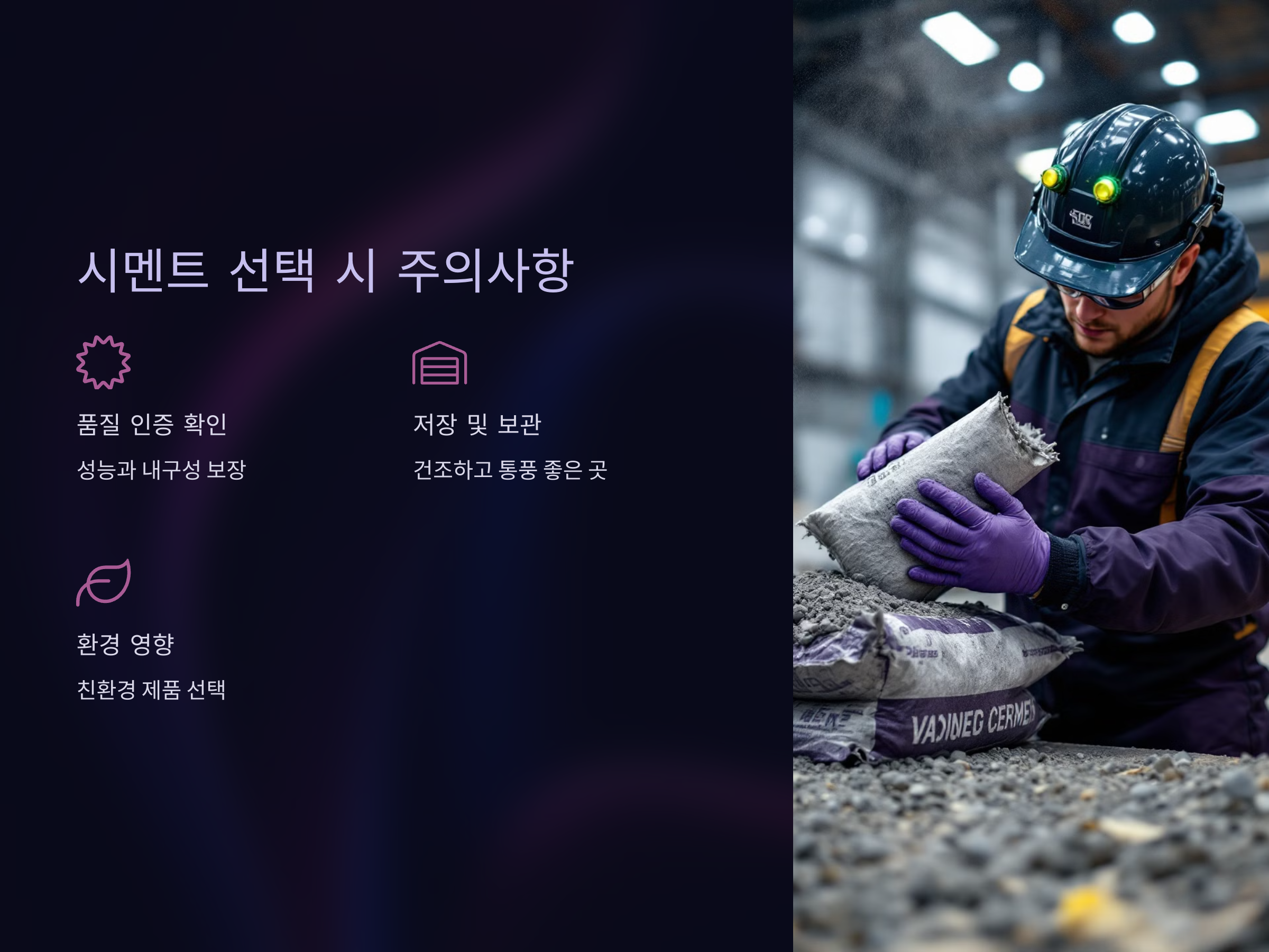 - 용도 파악: 구조물의 종류와 규모에 맞는 시멘트를 선택하세요.