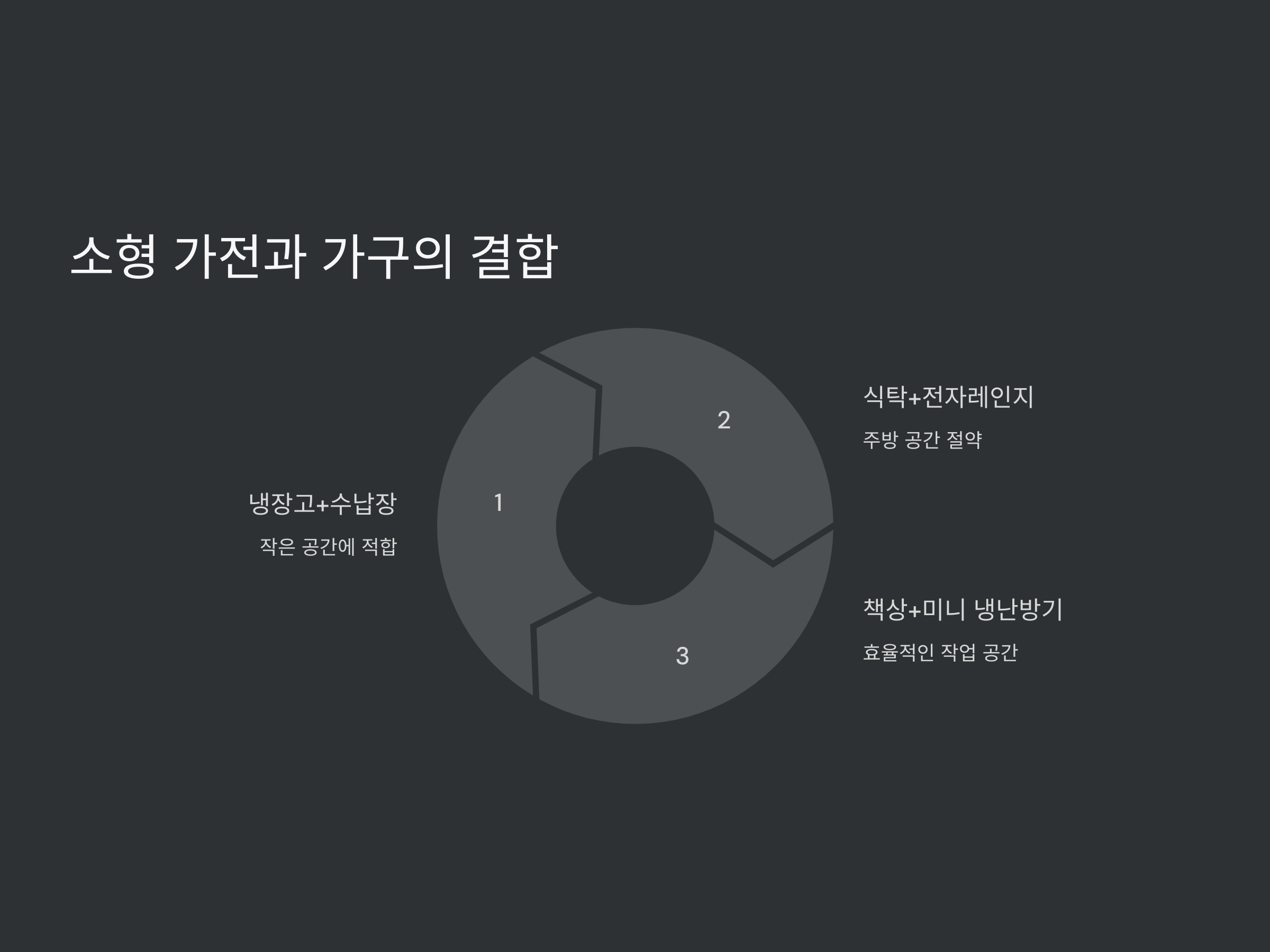 소형 가전과 가구를 결합한 제품은 두 가지 이상의 기능을 하나의 가구에서 제공해 주기 때문에, 좁은 공간에서도 편리하게 사용할 수 있습니다.