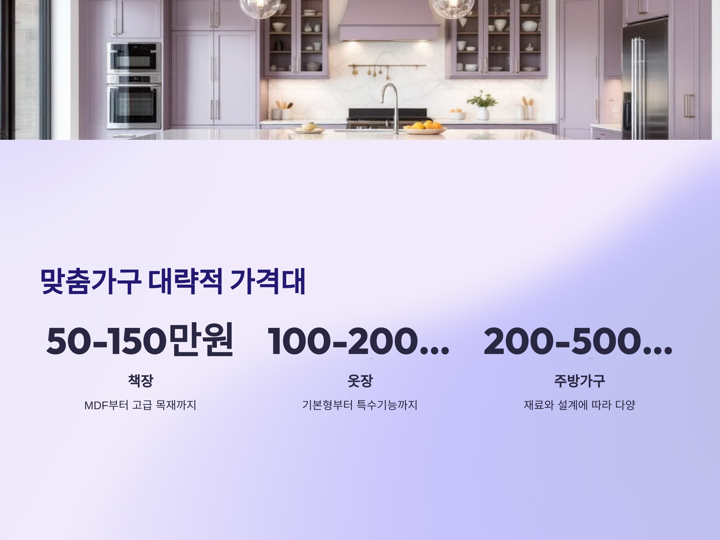 맞춤가구의 제작비용은 다양하게 나뉘며, 각 요소에 따라 가격이 달라집니다. 일반적으로 가장 많이 제작되는 맞춤가구들의 대략적인 가격대를 살펴보겠습니다.