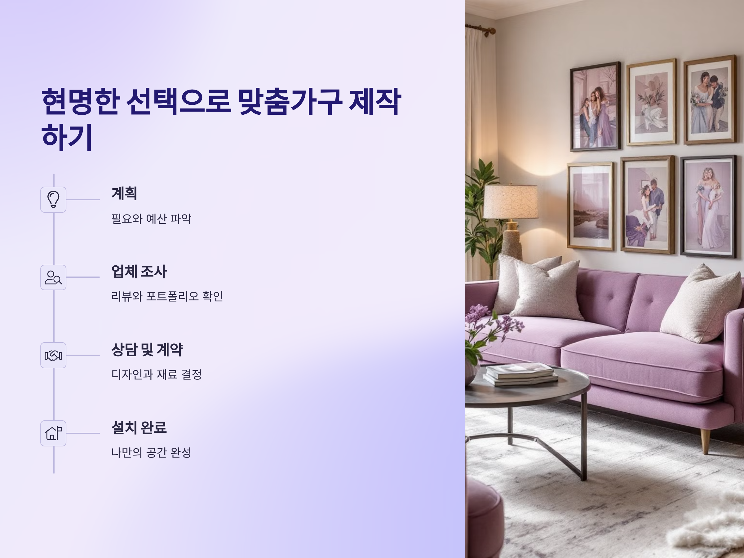 업체를 선정할 때는 가격뿐만 아니라 품질과 고객 리뷰를 꼼꼼히 확인하는 것이 중요합니다. 믿을 수 있는 업체를 선택하여 품질 좋은 가구를 합리적인 가격에 제작하는 것이 중요합니다.