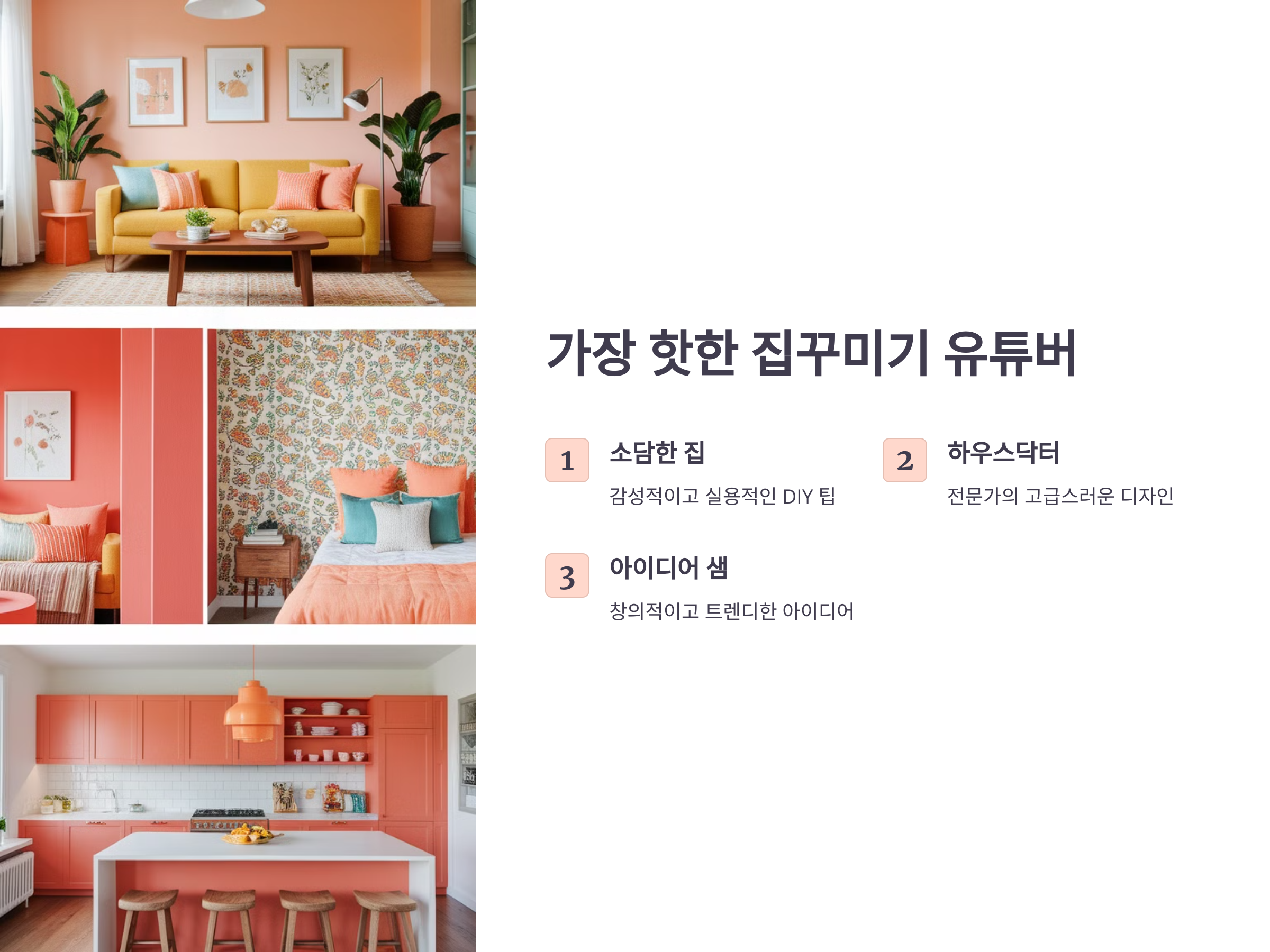 집을 꾸미는 데는 끝없는 아이디어와 영감이 필요합니다. 다양한 인테리어 스타일과 실용적인 팁을 제공하는 유튜버들이 많지만, 그 중에서도 특히 눈에 띄는 유튜버들을 소개할게요. 이 유튜버들을 참고하면 내 집을 더 아늑하고 스타일리시하게 꾸밀 수 있습니다.