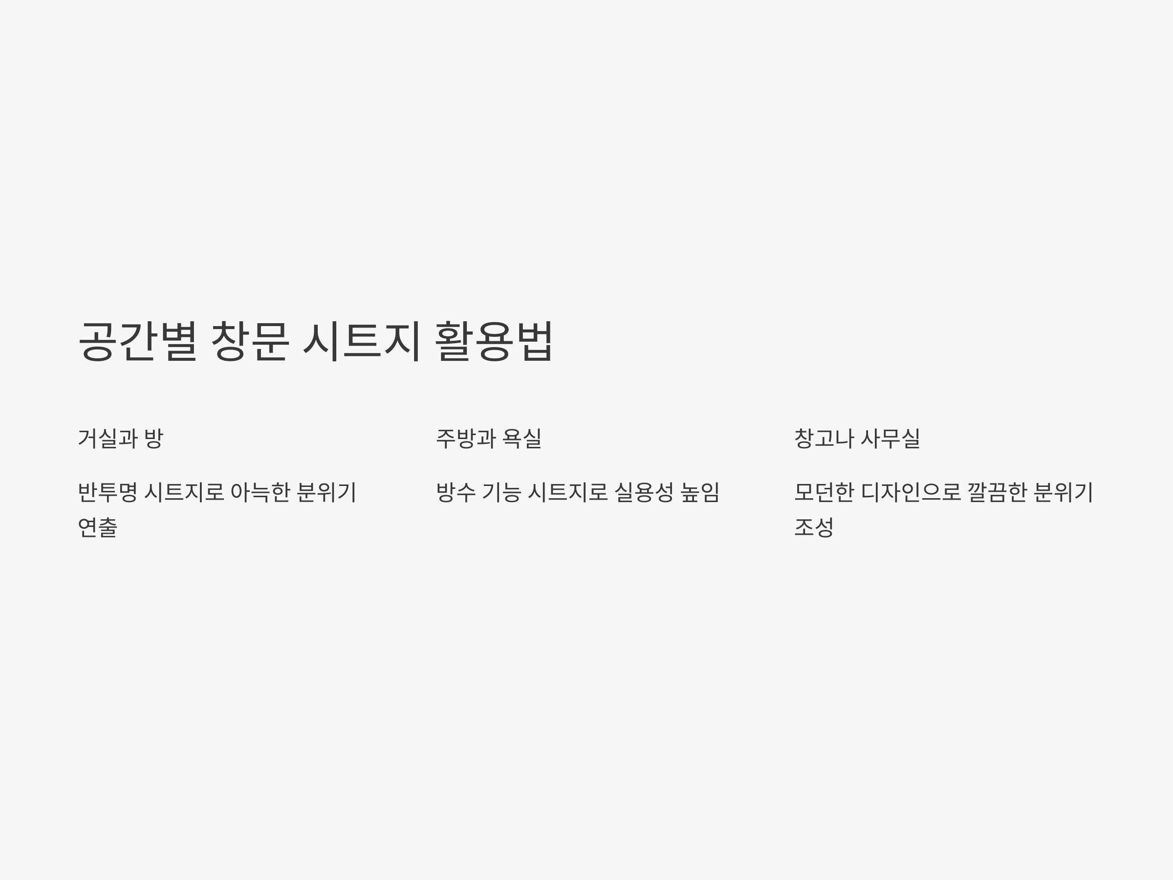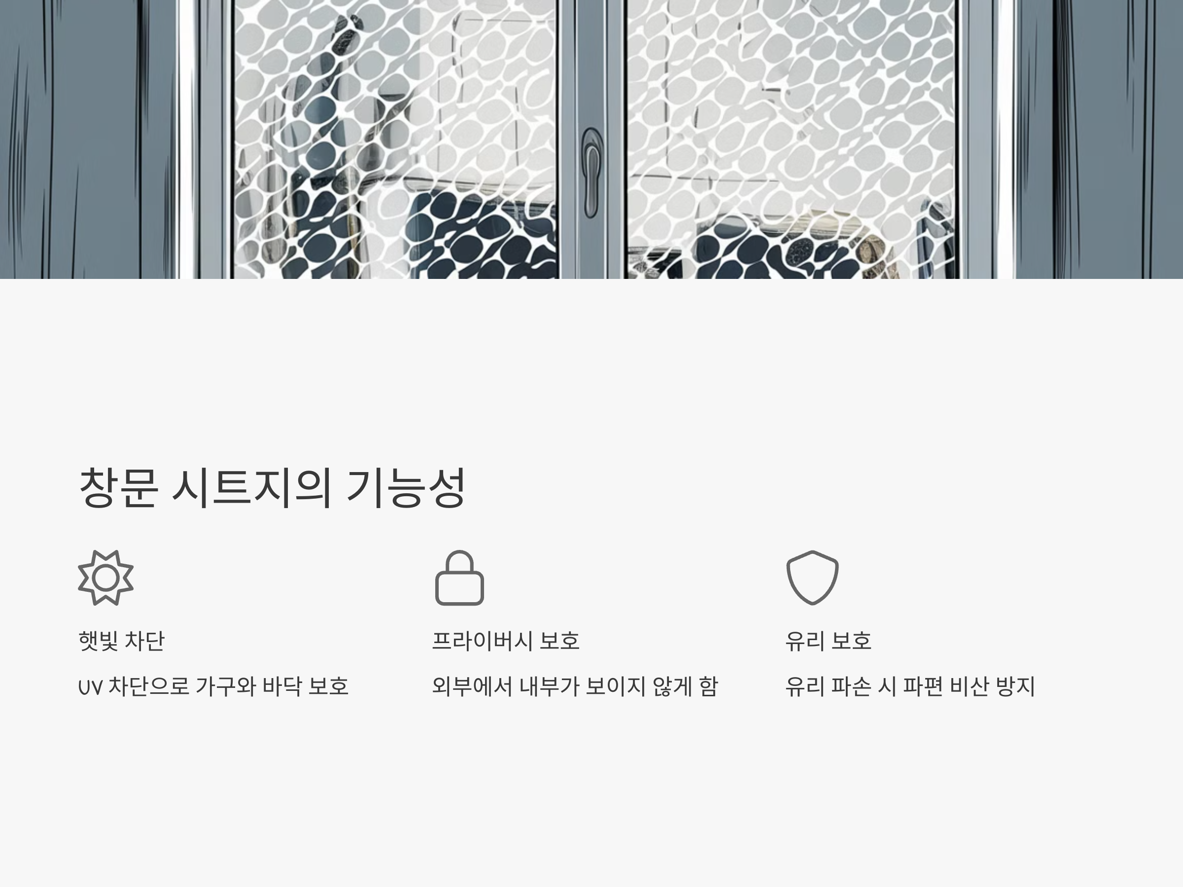 - 불투명 시트지: 프라이버시 보호와 햇빛 차단을 동시에 할 수 있습니다.