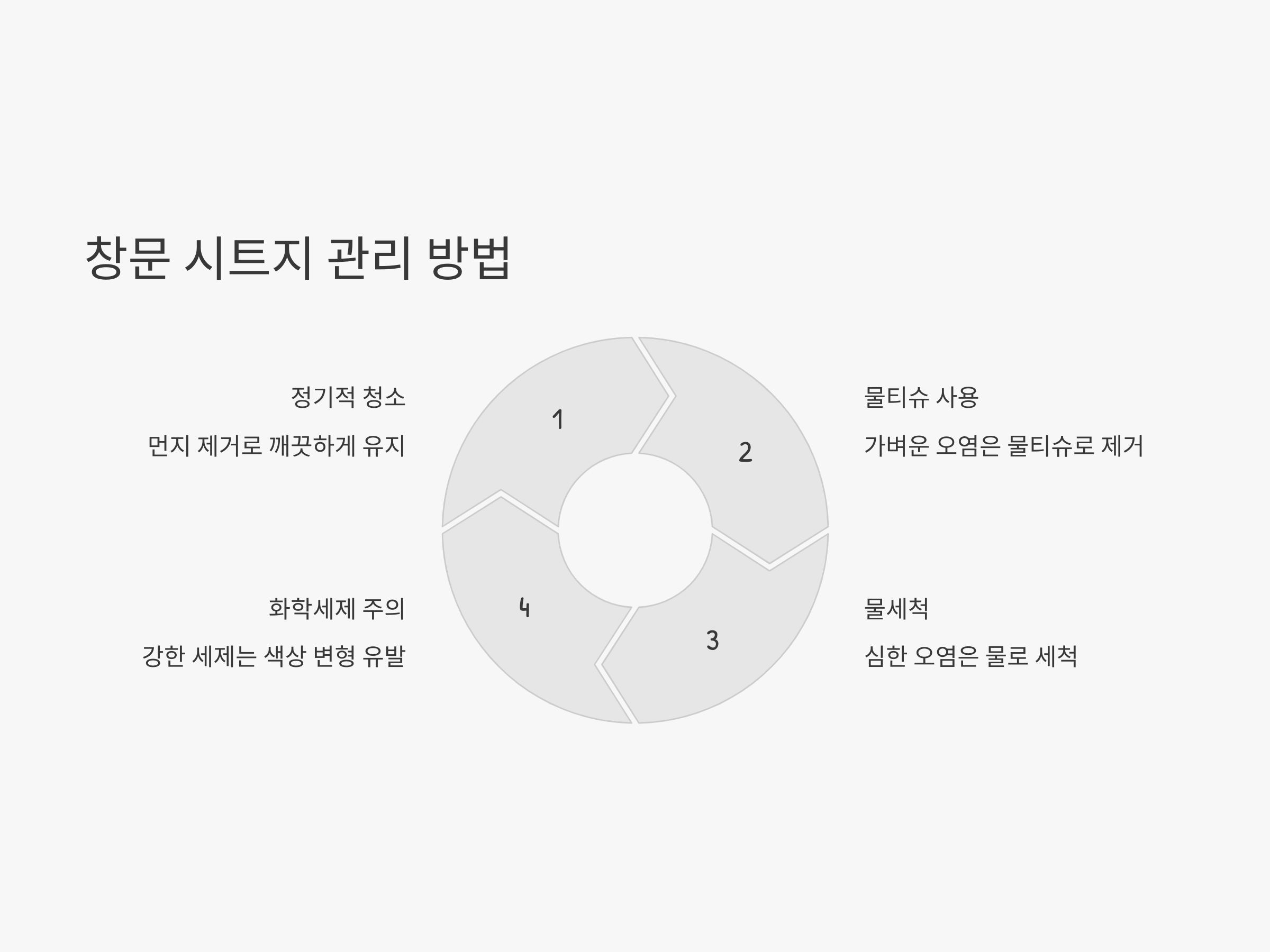 창문 시트지는 관리가 매우 간편합니다. 일반적으로 물티슈나 젖은 천으로 닦아내면 충분하며, 오염이 심한 부분은 세척이 가능하여 위생적으로 사용할 수 있습니다. 특히, 물세탁이 가능한 시트지는 장기적으로도 매우 유용하게 사용됩니다.