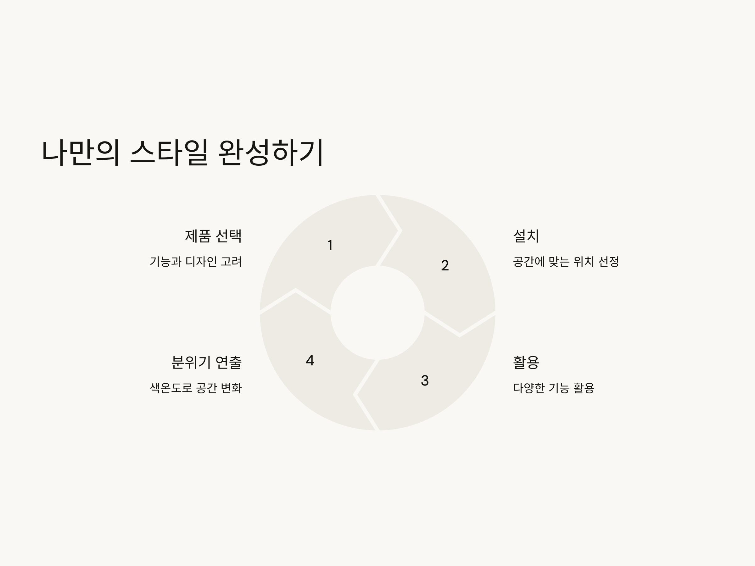 - 색온도 조절: 다양한 색온도를 설정할 수 있어 원하는 분위기 연출이 가능합니다.