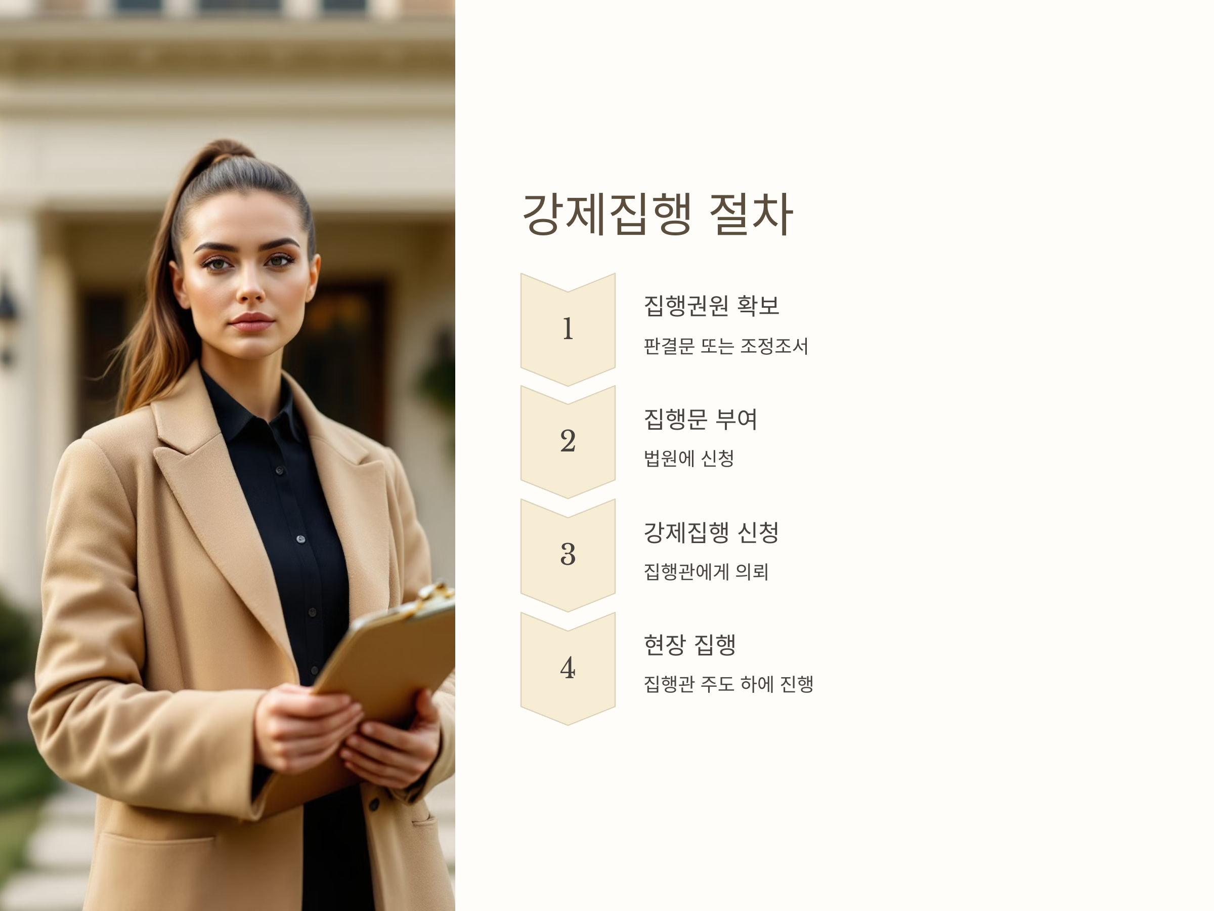 - 강제집행 신청: 판결 후에도 임차인이 자진 퇴거하지 않을 경우, 법원에 강제집행을 신청하여 부동산을 회수합니다.