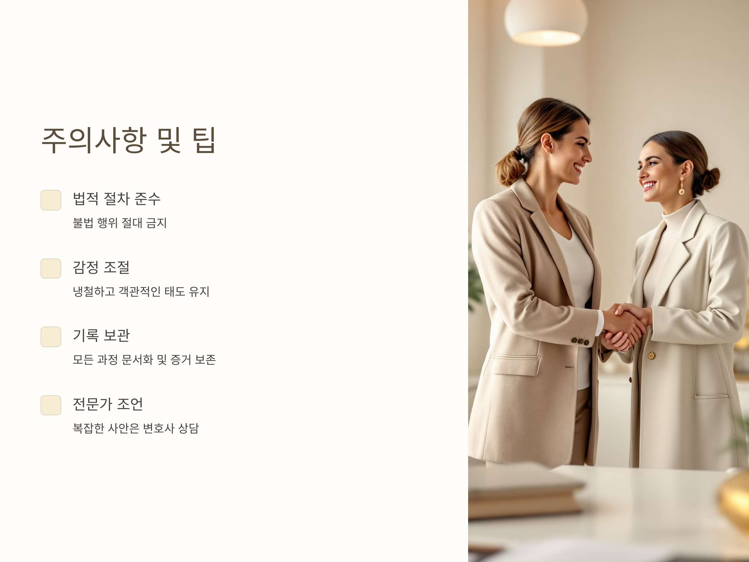 - 내용증명 발송: 임차인에게 계약 종료 또는 임대료 연체로 인한 계약 해지를 통보하고, 부동산을 비워줄 것을 요청하는 내용증명을 발송합니다. 이는 향후 소송에서 중요한 증거로 활용됩니다.