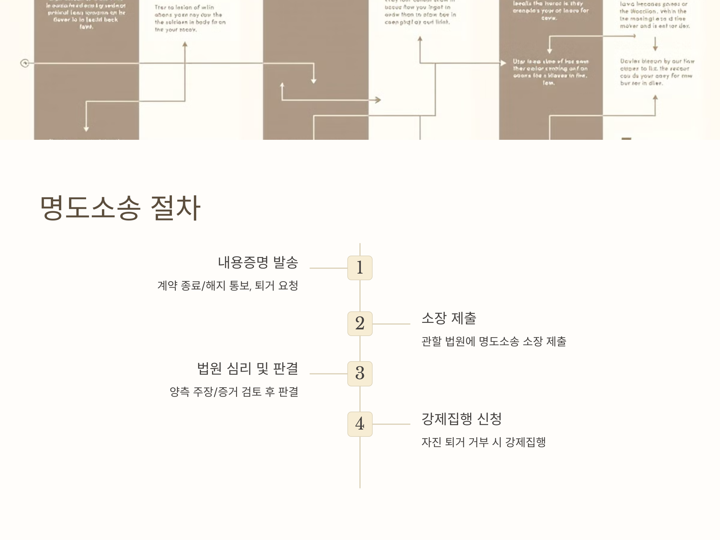 명도소송은 다음과 같은 절차로 진행됩니다: