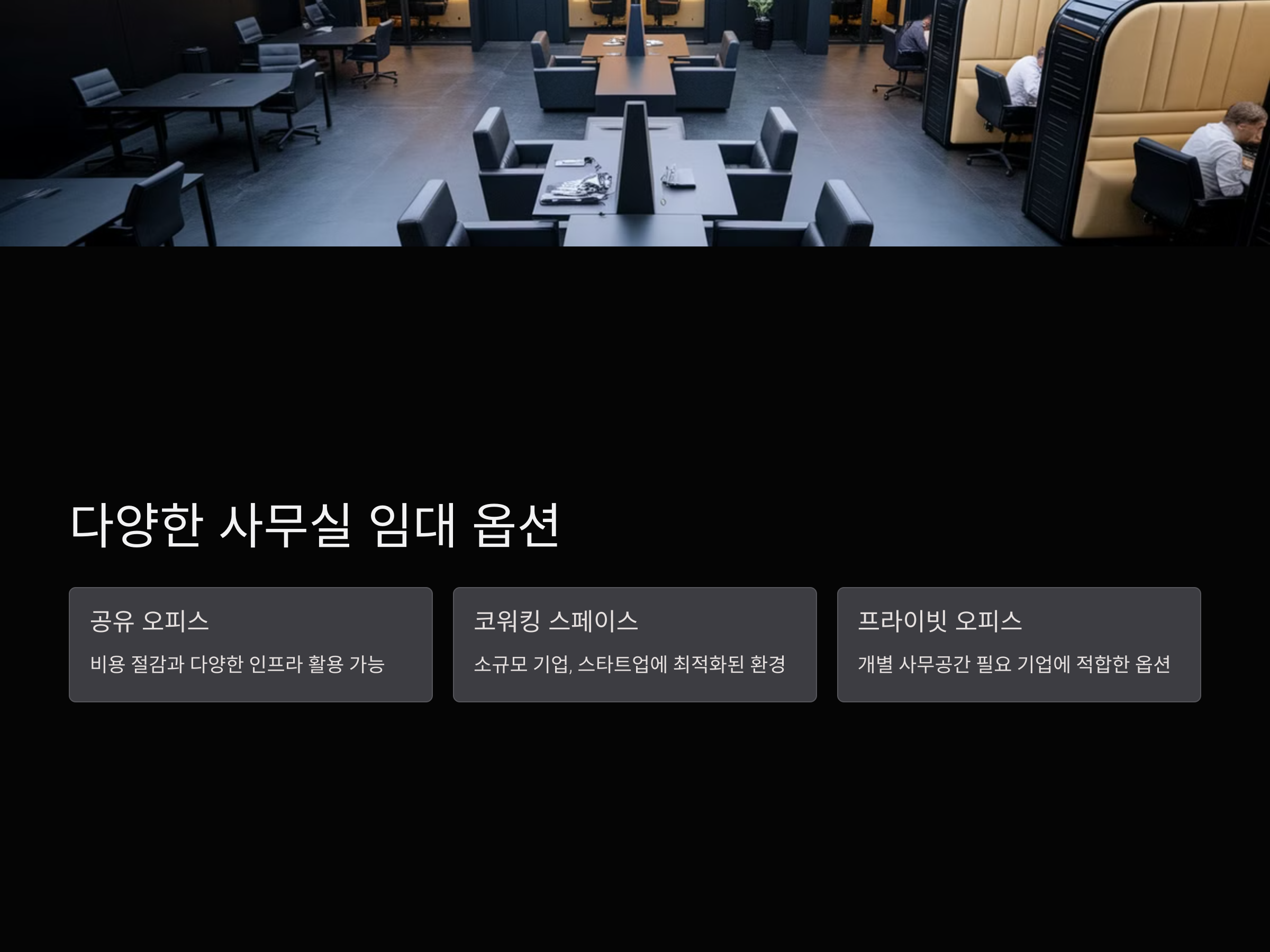 - 시설과 인프라: 고속 인터넷, 회의실, 휴게 공간 등 업무 효율성을 높여주는 시설이 구비된 사무실이 선호됩니다.