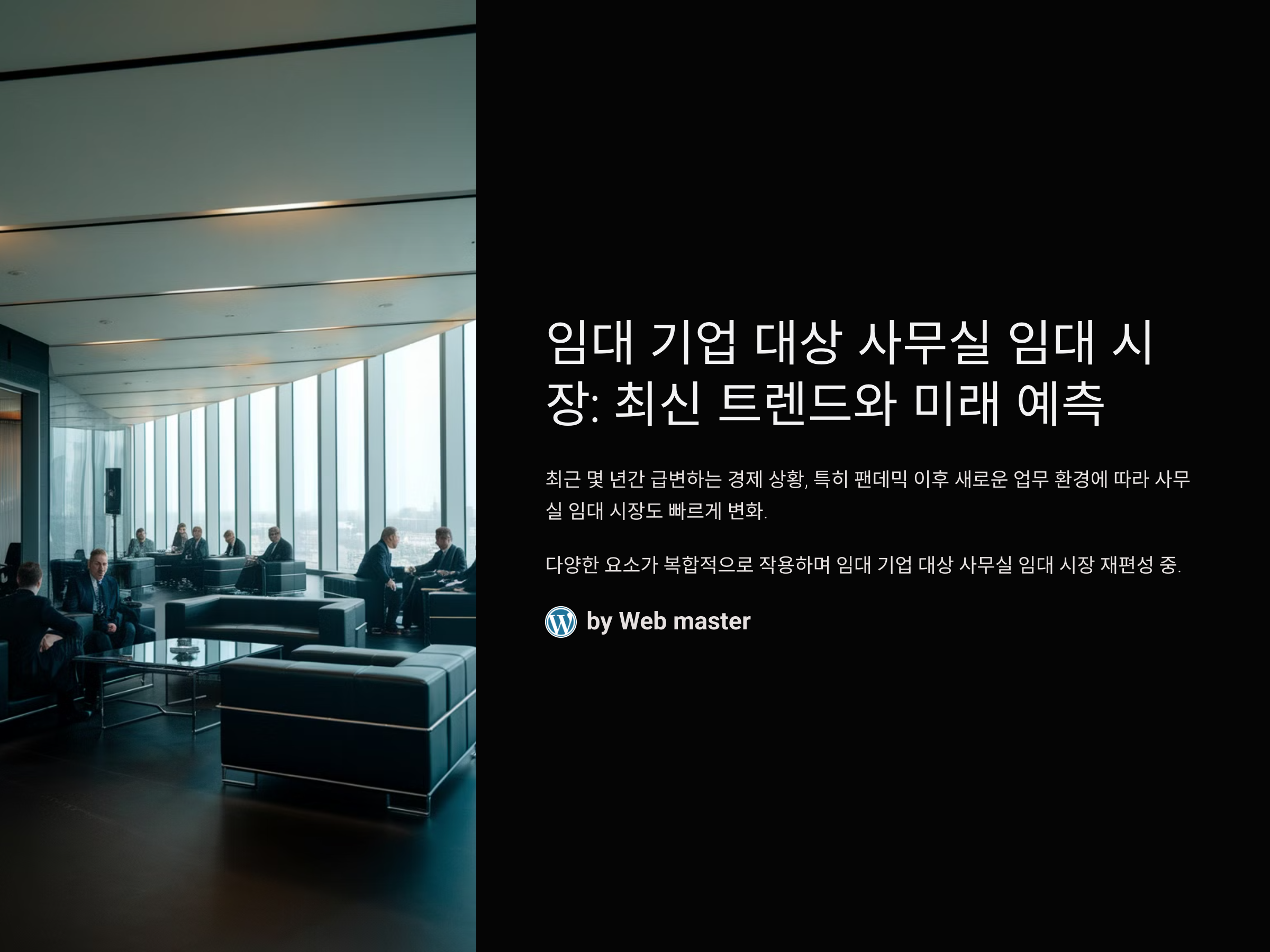 사무실 임대 시장은 기업들에게 중요한 선택의 기준이 되는 분야로, 특히 임대 기업을 대상으로 한 시장은 그 성격이 더욱 복잡하고 빠르게 변하고 있습니다. 최근 몇 년간 급변하는 경제 상황, 특히 팬데믹 이후의 새로운 업무 환경에 따라 많은 변화가 일어나고 있습니다. 사무실 임대 시장에 대한 이해가 부족하면, 올바른 결정을 내리기 어렵습니다. 이를 방지하기 위해, 이번 포스팅에서는 임대 기업 대상 사무실 임대 시장의 최신 동향과 향후 전망에 대해 자세히 다뤄보겠습니다.