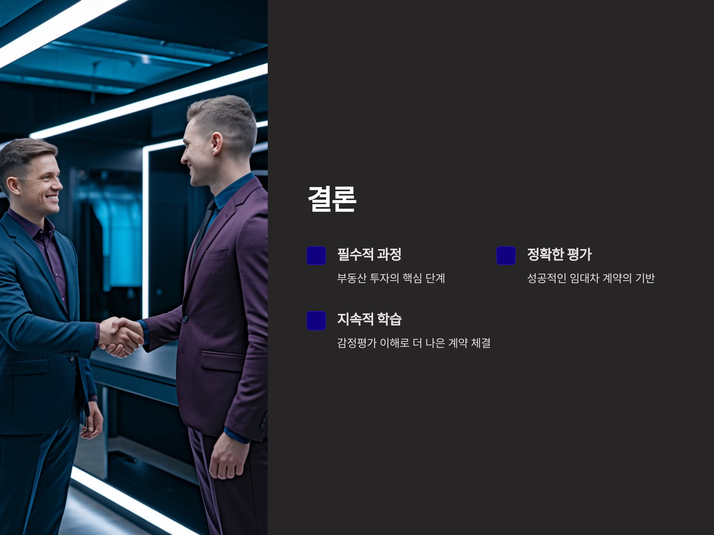 정확한 감정평가는 임대차 계약에서의 협상력을 높이고, 경쟁력을 강화하는 데 중요한 역할을 합니다. 시장에서 적절한 가격을 제시하는 것이 중요하며, 이를 통해 장기적인 임대 수익을 확보할 수 있습니다.