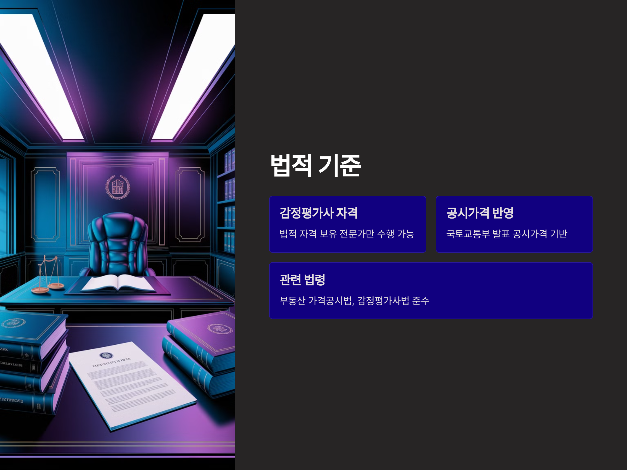 부동산 감정평가는 감정평가사의 자격을 갖춘 전문가만 수행할 수 있습니다. 감정평가사는 법적 자격을 보유한 전문인이며, 공인된 감정평가기준에 따라 평가를 진행합니다. 이를 통해 감정평가의 정확성과 신뢰성을 확보할 수 있습니다.
