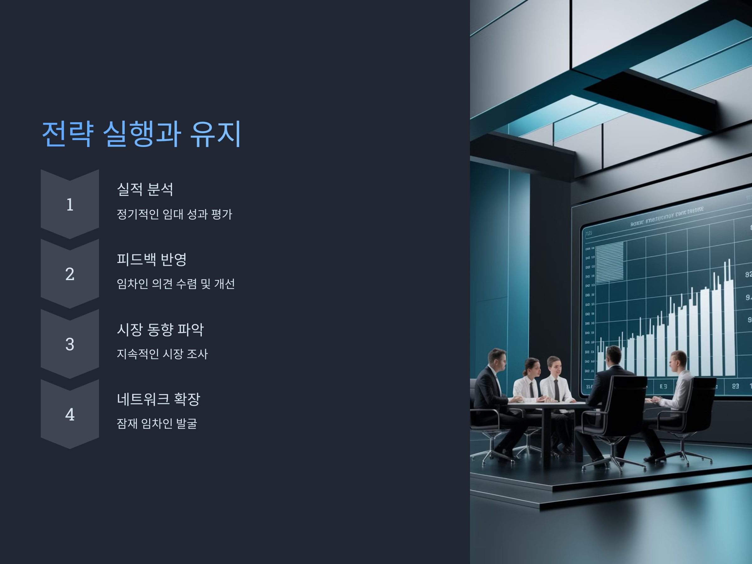 정기적으로 임대 실적을 분석하여 전략이 잘 실행되고 있는지 확인해야 합니다. 임차인의 피드백을 통해 필요한 개선점을 파악하고, 임대 계약 갱신 시 불편사항을 해결하는 등의 방법을 적용할 수 있습니다.
