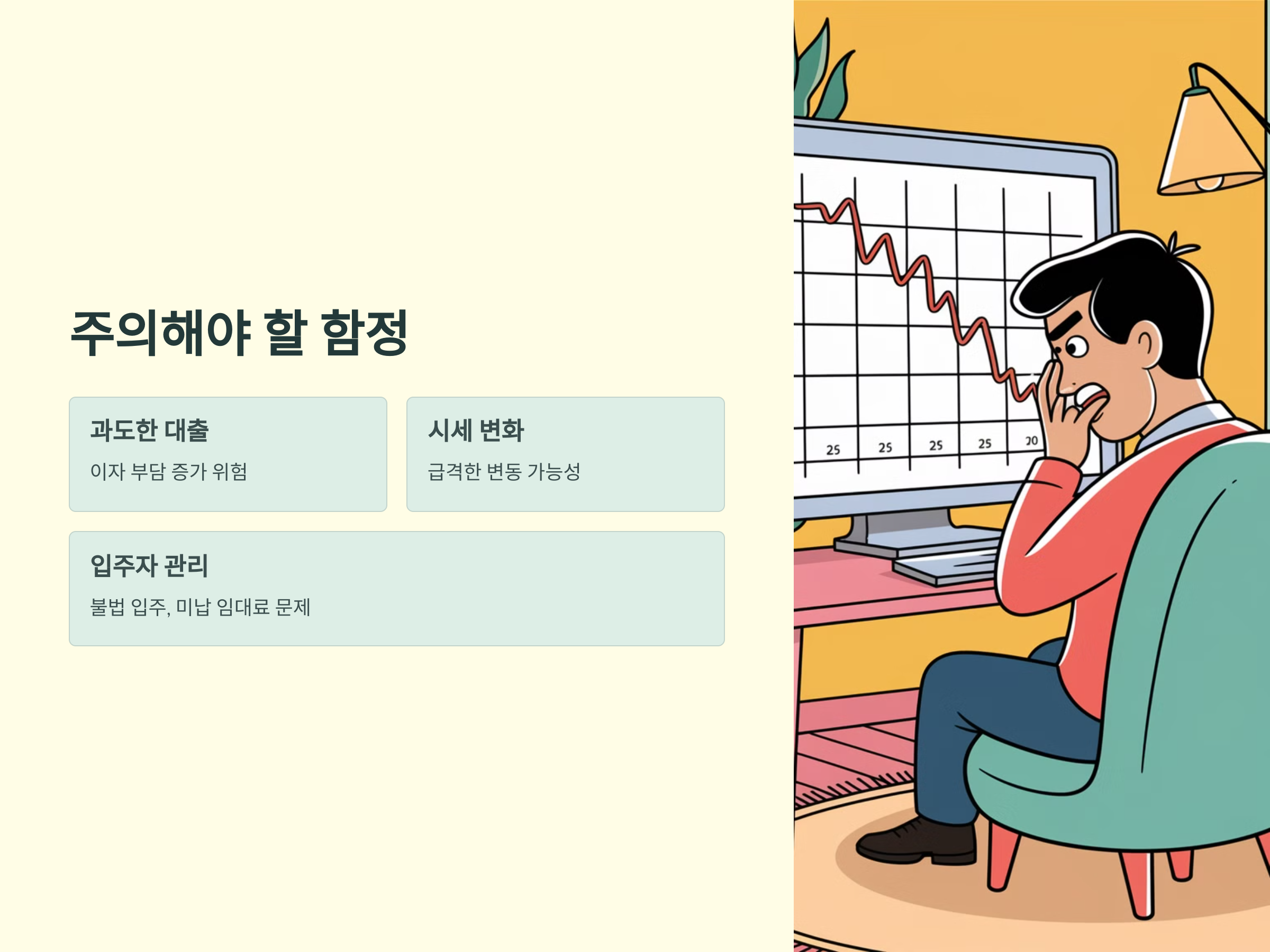 대출을 이용해 오피스텔을 구매할 경우, 이자 부담이 커질 수 있습니다. 따라서 대출을 받기 전에 자신의 상환 능력을 충분히 고려하고, 무리한 대출은 피하는 것이 중요합니다. 과도한 대출은 임대 수익이 낮더라도 이자 지출로 인해 수익을 전부 갉아먹을 수 있기 때문입니다.