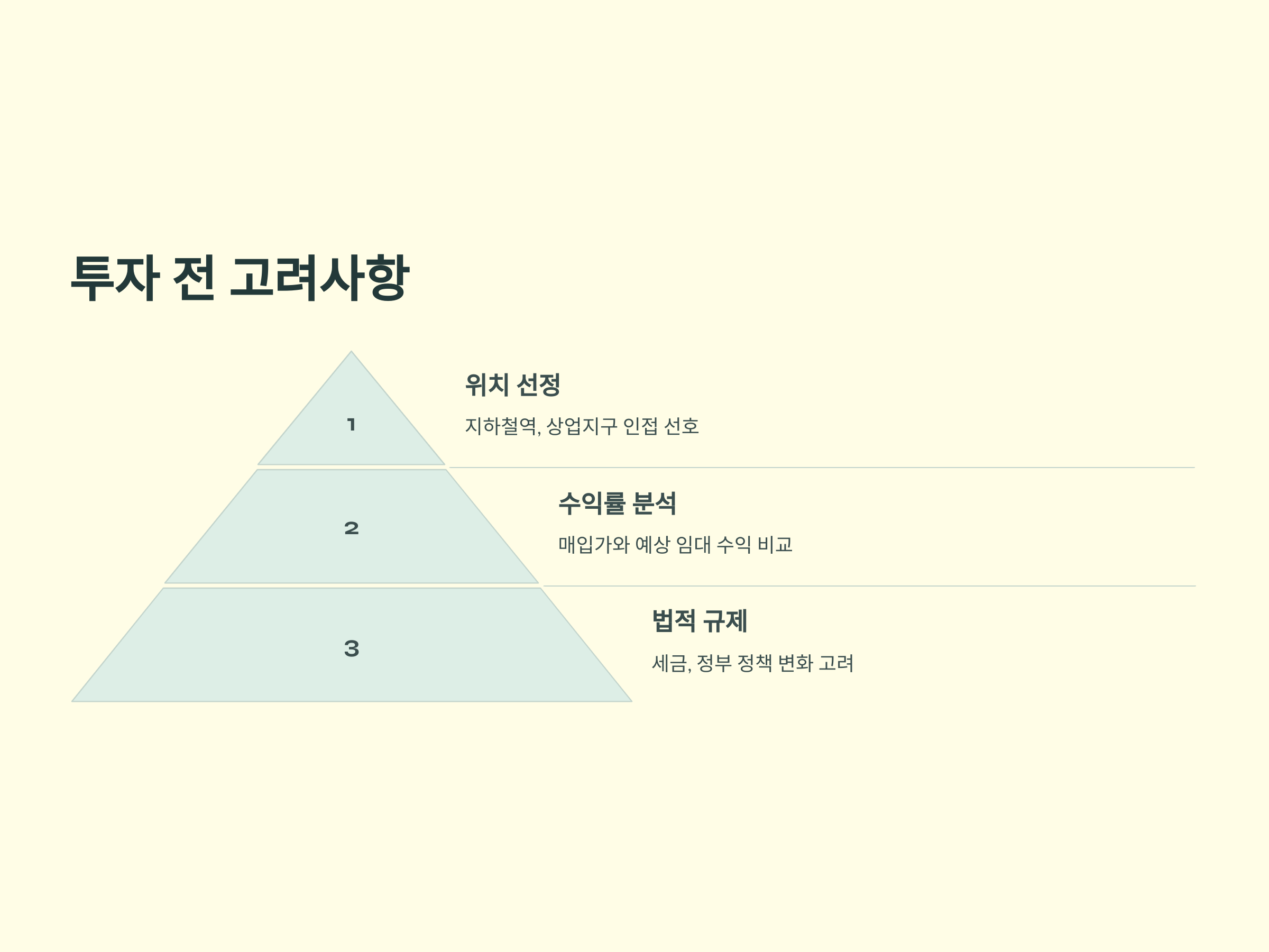 위치가 가장 중요한 요소입니다. 주변의 상업 지구나 교통 편의성이 좋은 곳을 선택하는 것이 좋습니다. 또한, 오피스텔의 관리 상태와 건물의 연령도 중요한 고려 요소입니다.