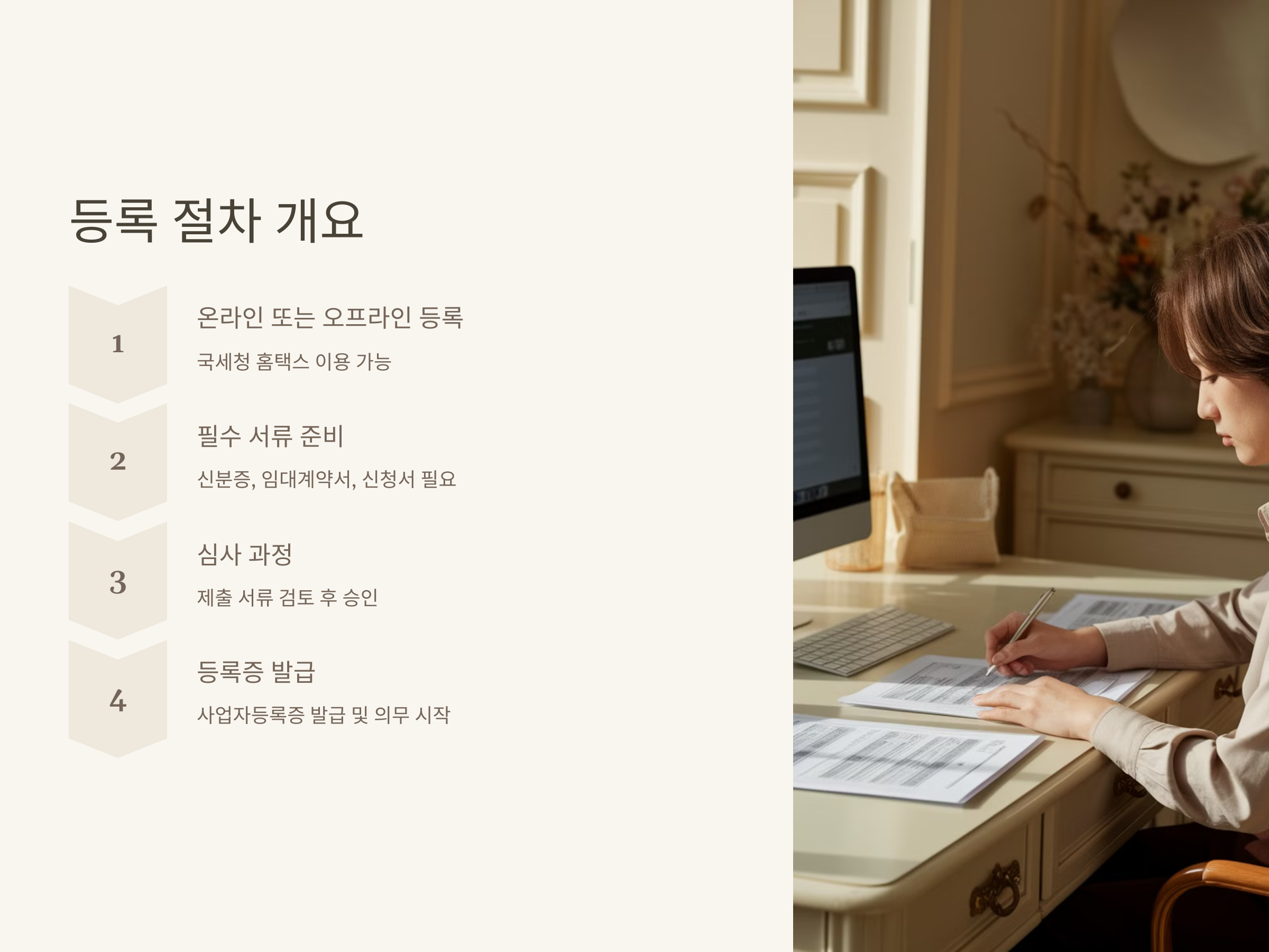 사업자 등록을 위해서는 신분증 사본, 부동산 임대계약서, 임대사업자 등록을 위한 신청서 등 몇 가지 서류가 필요합니다. 이 서류들은 온라인으로 제출하거나 직접 제출할 수 있습니다.