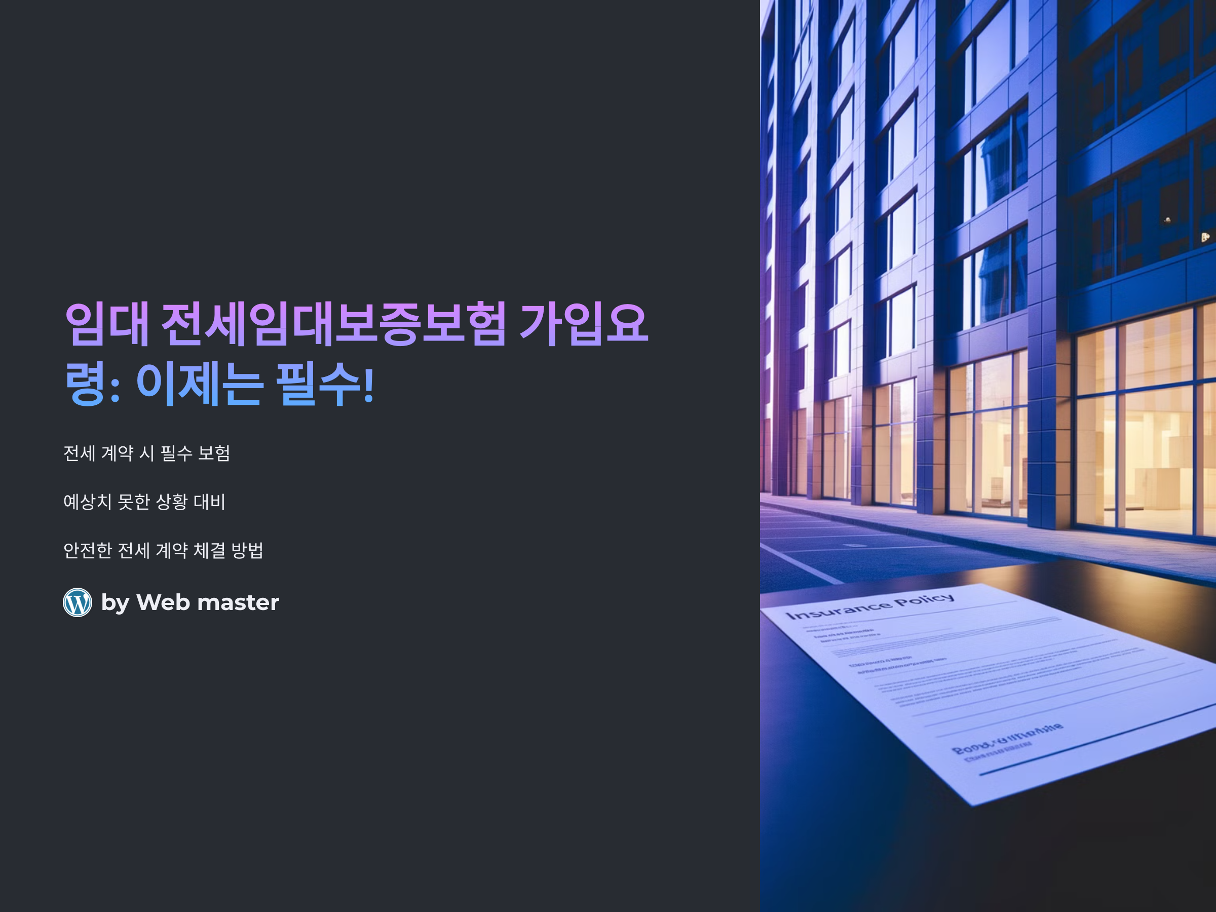 전세를 계약할 때 임대보증보험에 가입하는 것이 선택이 아닌 필수라는 점, 알고 계셨나요? 전세 계약을 할 때 예상치 못한 상황에 대비해 임대보증보험에 가입하는 것은 굉장히 중요한 일이지만, 정확한 가입 방법을 모르고 있는 경우가 많습니다. 이번 포스트에서는 전세임대보증보험에 대해 반드시 알아야 할 사항과 가입 요령을 상세히 설명해 드리겠습니다. 이 글을 통해 전세 계약을 안전하게 체결하는 법을 익혀보세요.