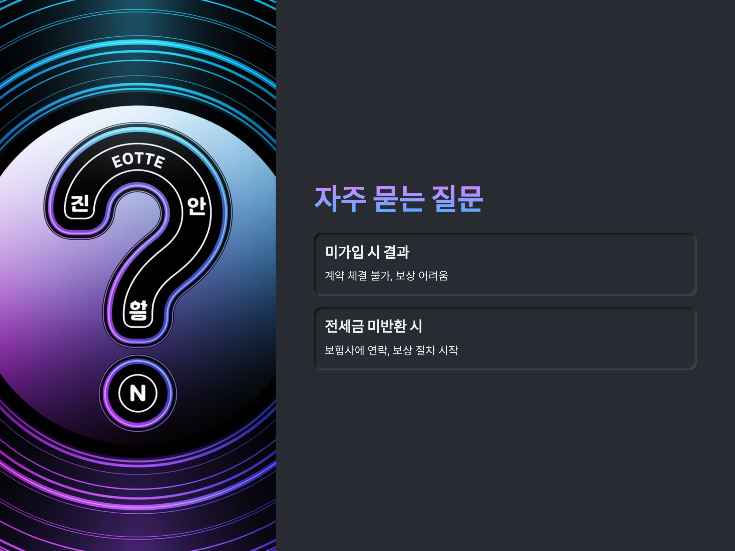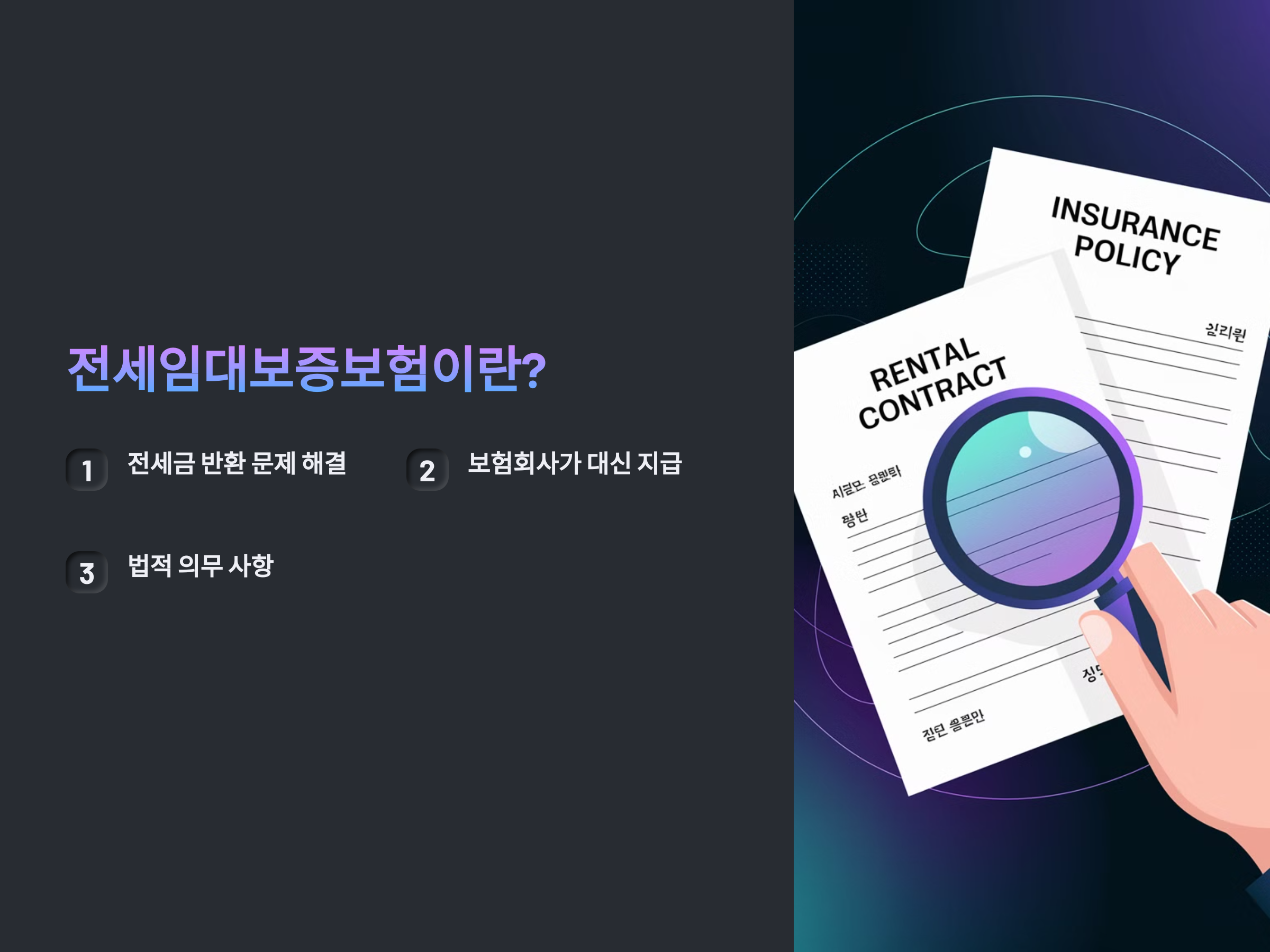 - 안전한 거래 보장: 집주인과의 분쟁 없이 안전하게 전세금을 반환받을 수 있습니다.