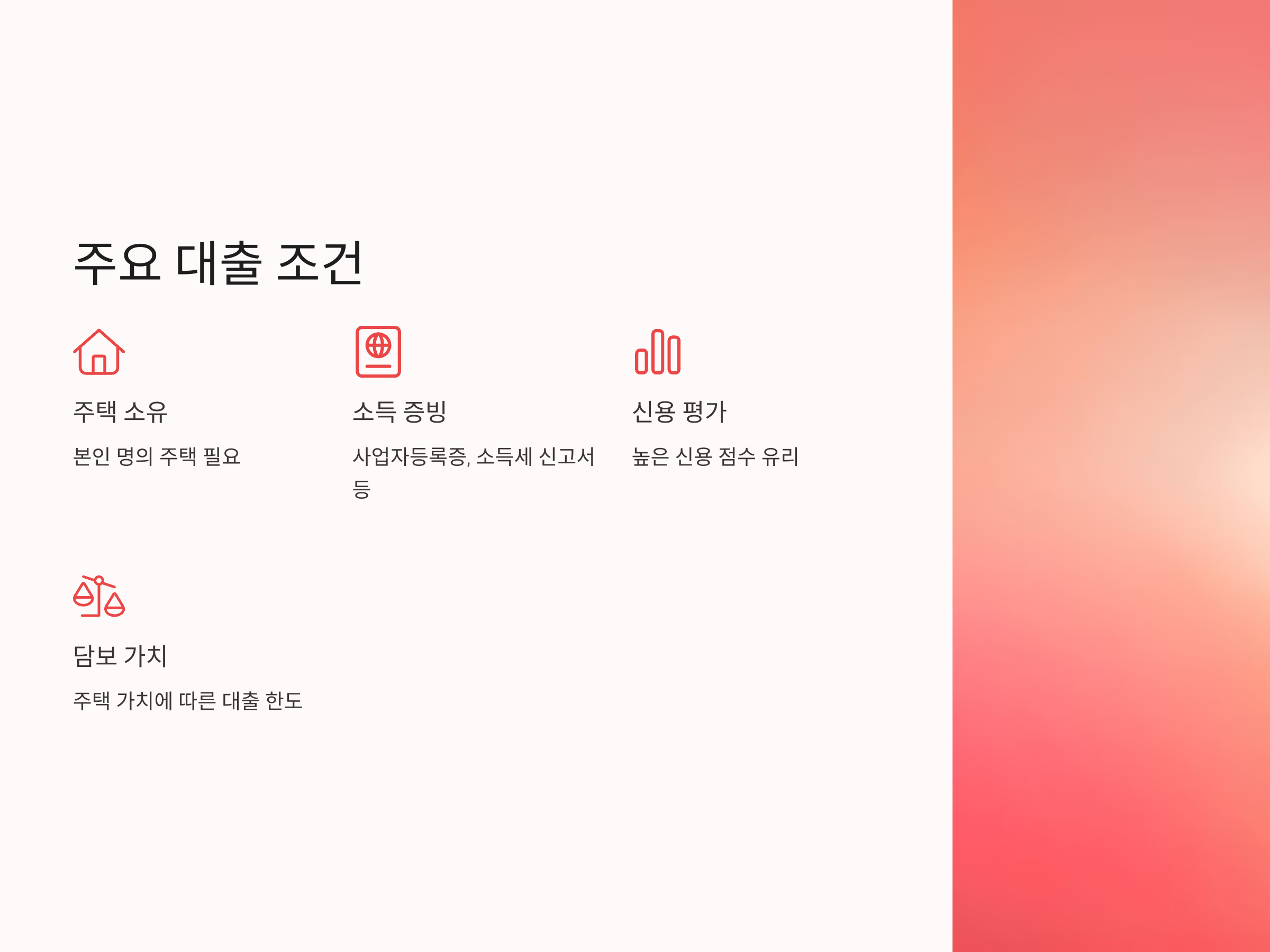 자영업자 주택담보대출의 주요 조건