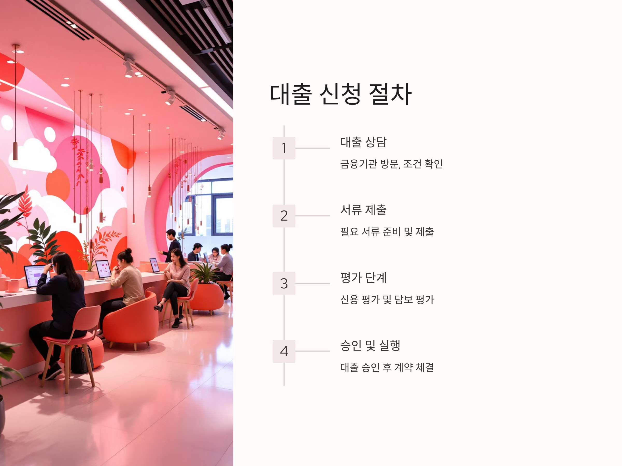 - 대출 실행: 대출 승인이 완료되면, 대출 계약을 체결하고 자금을 수령합니다.