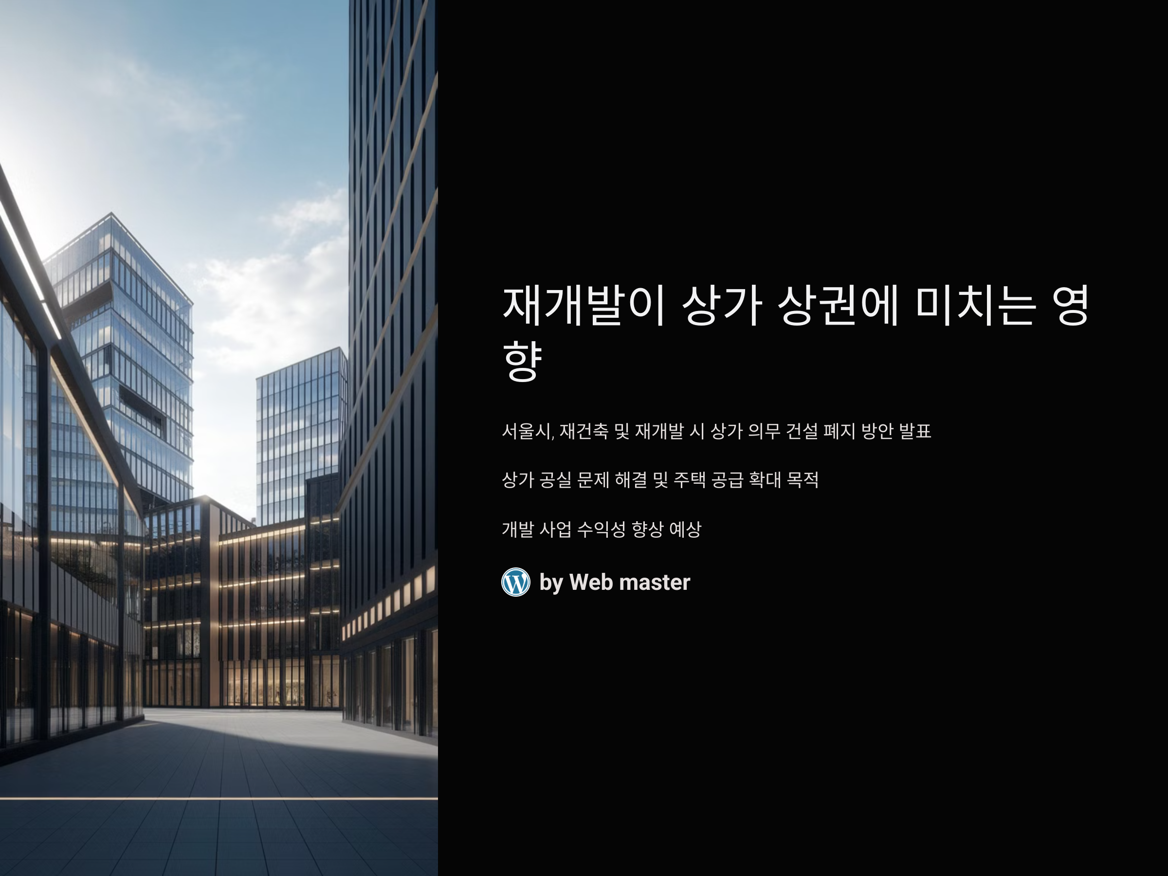 최근 서울시에서는 재건축 및 재개발 시 상가를 의무적으로 건설하지 않아도 되는 방안을 발표했습니다. 이는 상가 공실 문제를 해결하고 주택 공급을 늘리기 위한 조치로, 개발 사업의 수익성을 높일 수 있을 것으로 예상됩니다. 이러한 변화는 도심 내 주택 수요 증가와 상가 과잉 공급 문제를 동시에 해결하려는 의도로 보입니다. citeturn0search0