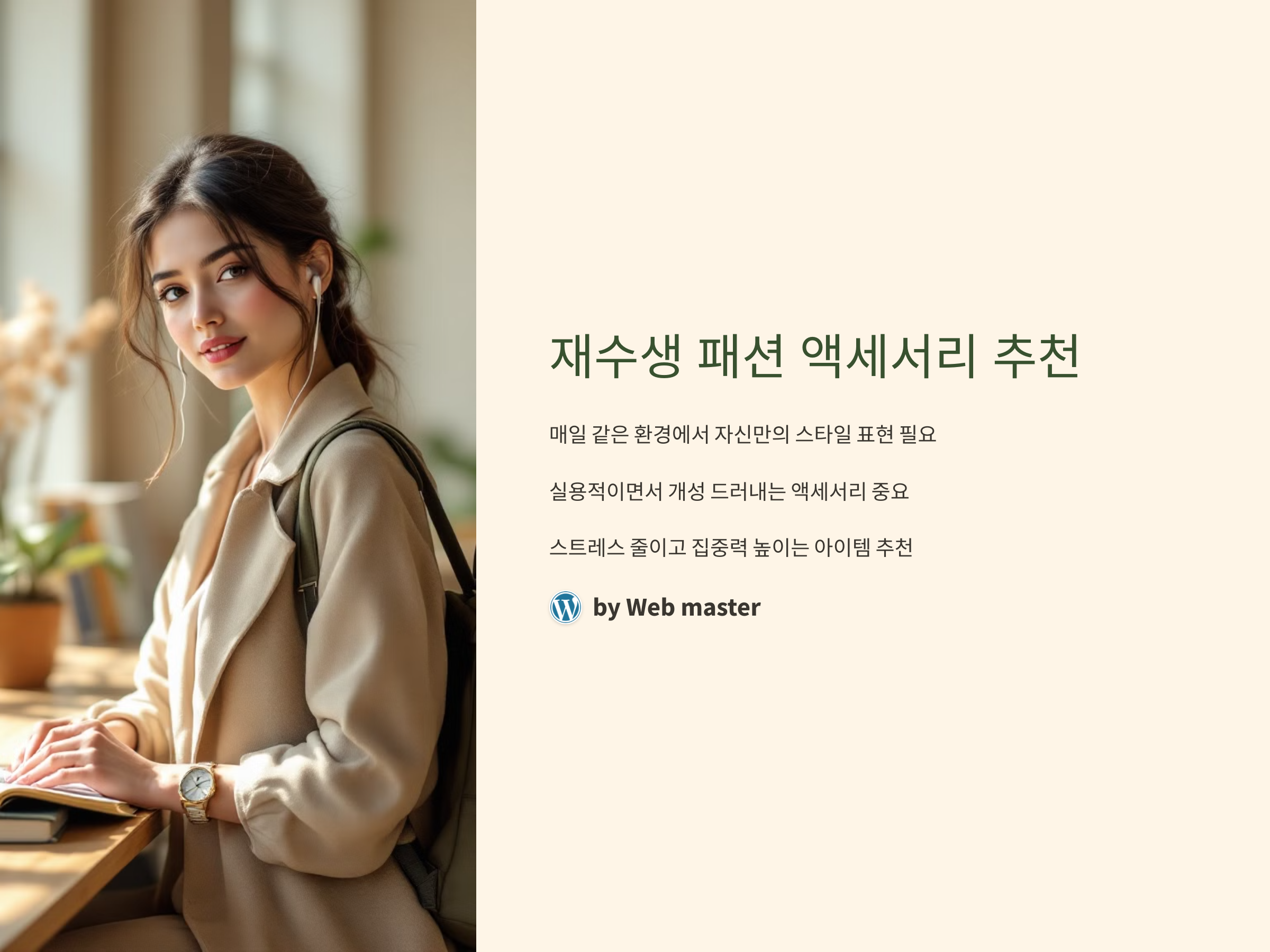 재수생 시절, 패션도 중요한 요소가 될 수 있습니다. 매일 같은 환경에서 지내다 보면 자신만의 스타일을 표현할 수 있는 방법이 필요하고, 이는 자신감을 높이는 데 중요한 역할을 합니다. 특히, 액세서리는 단순한 장식 이상의 의미를 지니고 있어 자신을 더욱 돋보이게 만들 수 있는 중요한 아이템입니다. 학습에 집중하면서도 나만의 스타일을 강조할 수 있는 패션 액세서리 추천을 준비했습니다.