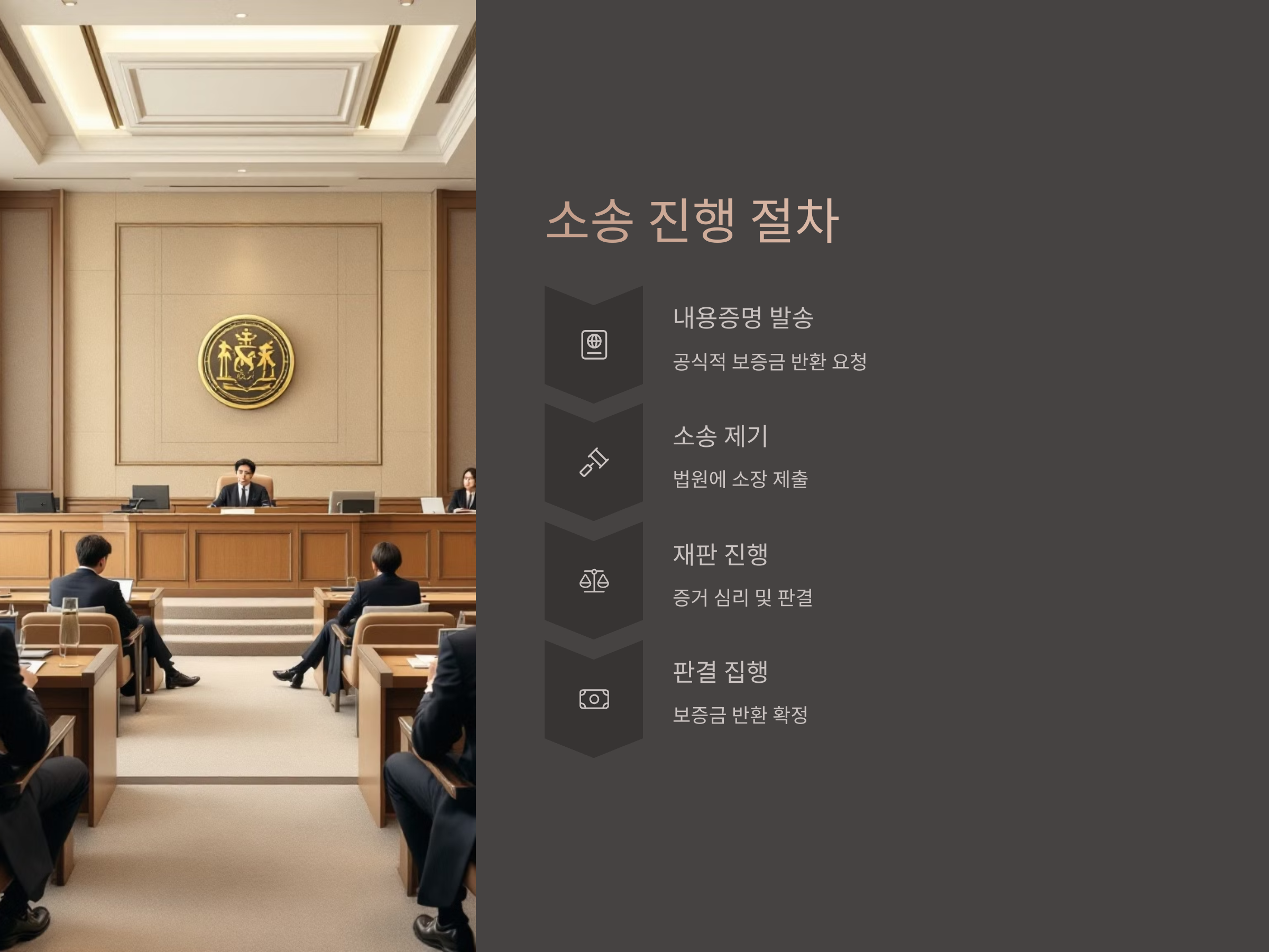 전세보증금 반환소송은 다음과 같은 절차를 따릅니다: