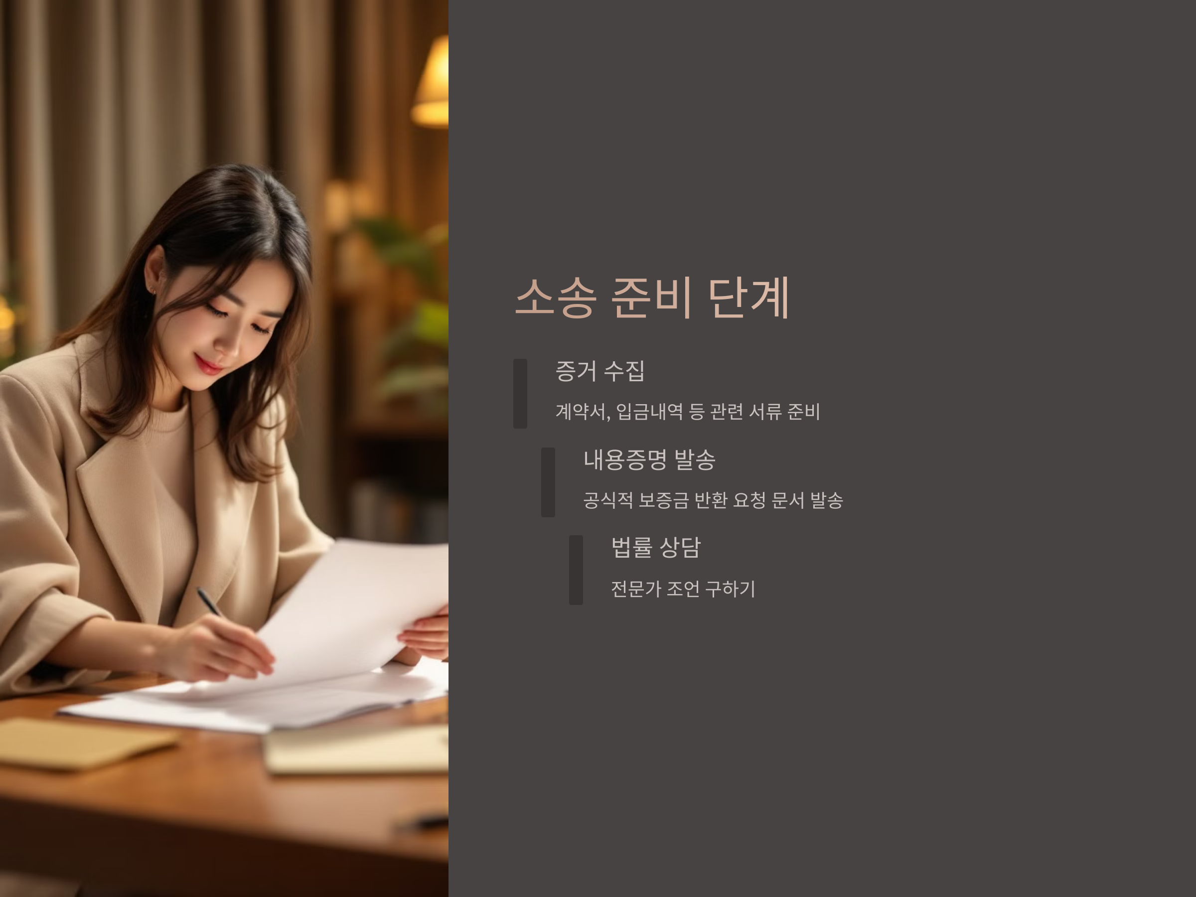 - 재판: 법원에서 소송을 심리하고 판결을 내립니다. 이때, 보증금 반환이 확정되면 임대인은 반환해야 합니다.