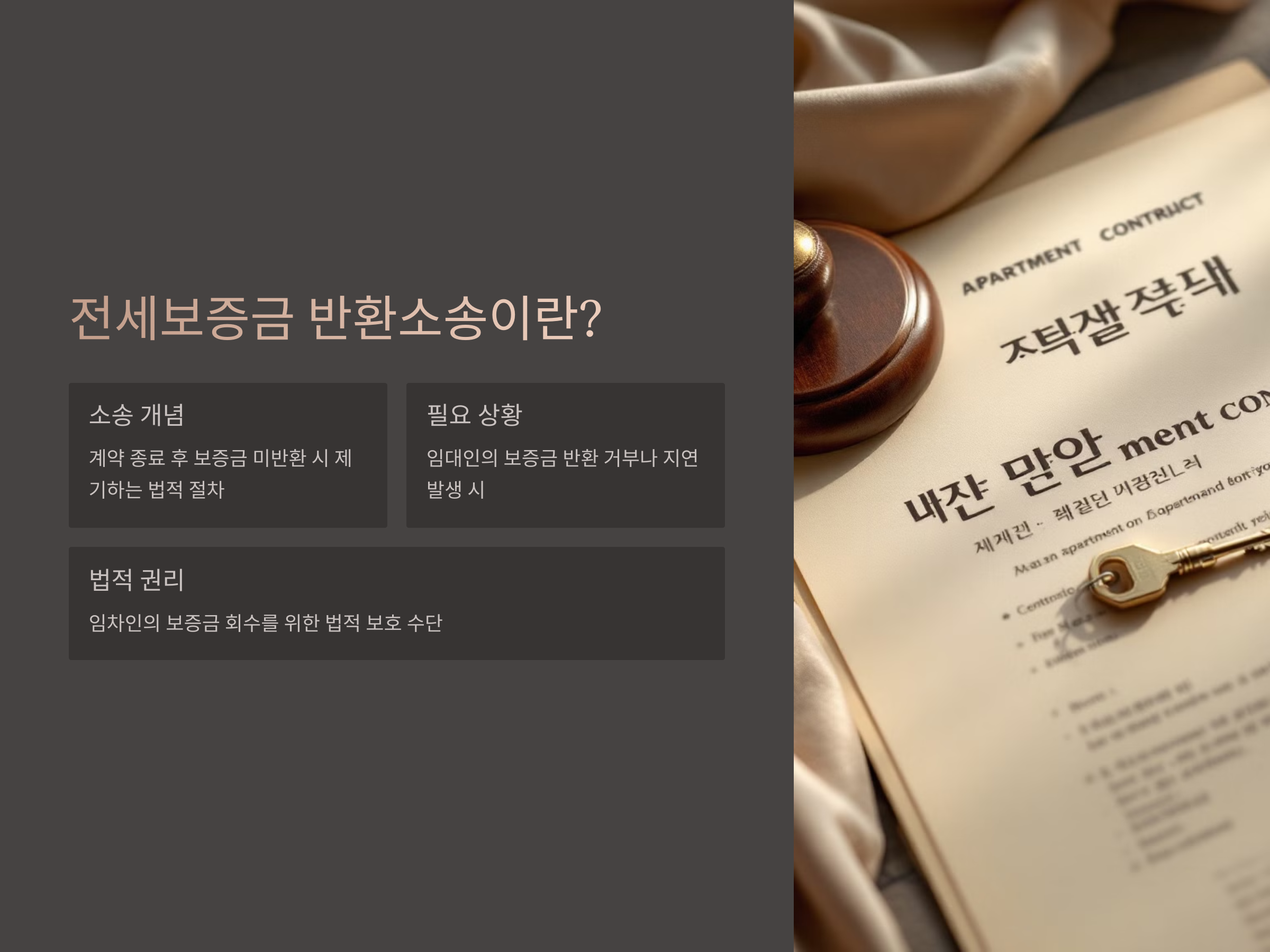 전세보증금 반환소송은 전세 계약 종료 후, 임차인이 임대인에게 돌려받아야 할 보증금을 반환받지 못했을 때 제기하는 소송입니다. 보증금 반환을 거부하거나 지연하는 임대인을 상대로 법적으로 보증금을 회수하기 위한 방법입니다. 전세 계약 종료 시점부터 보증금을 반환받을 때까지 일정 기간이 지나면, 법적 절차를 통해 이를 해결할 수 있습니다.