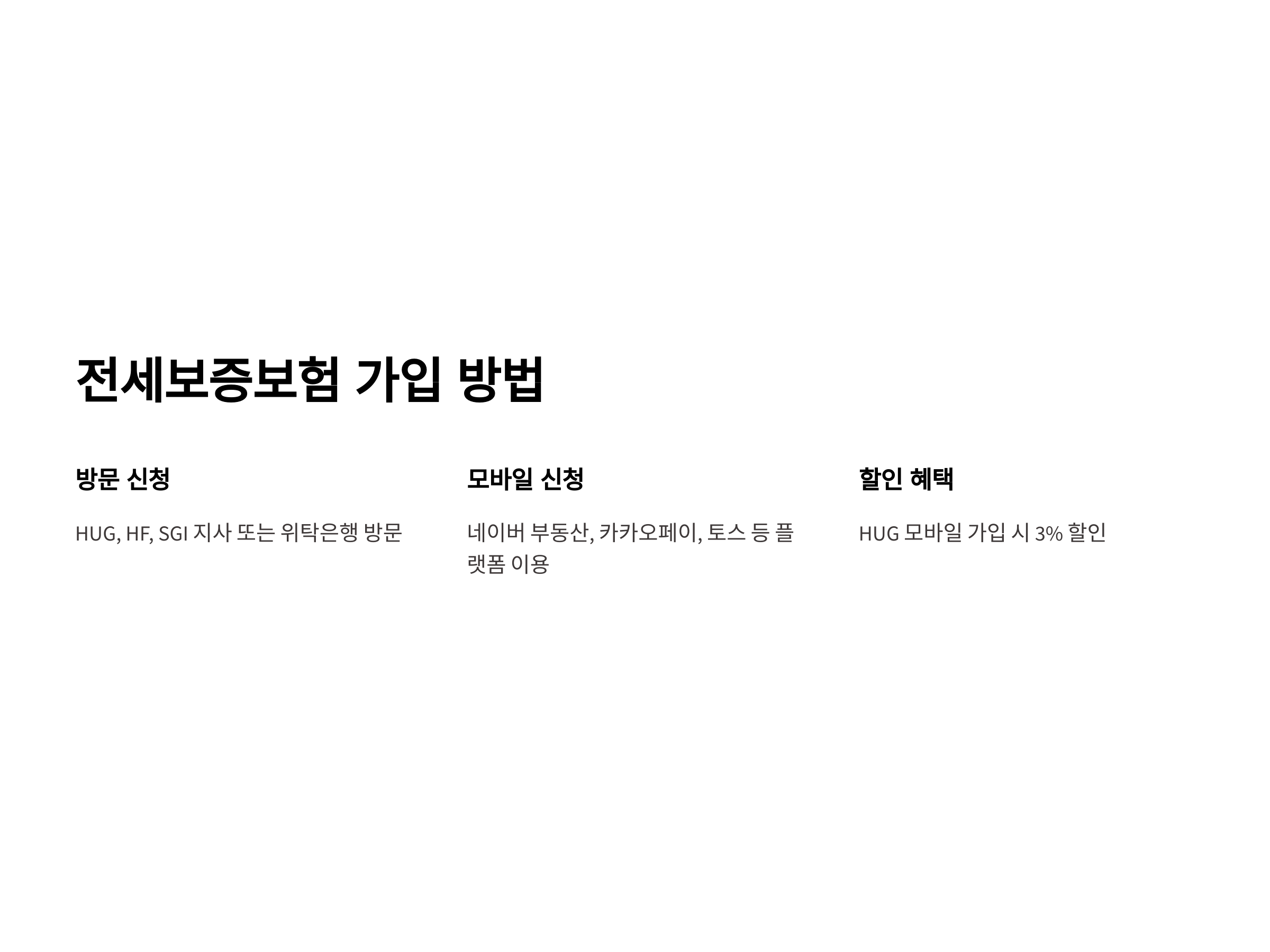 - 모바일 신청: 네이버 부동산, 카카오페이, 토스 등의 플랫폼을 통해 간편하게 신청할 수 있습니다. 특히, HUG 전세보증보험의 경우 모바일로 가입 시 3% 할인 혜택을 제공합니다.