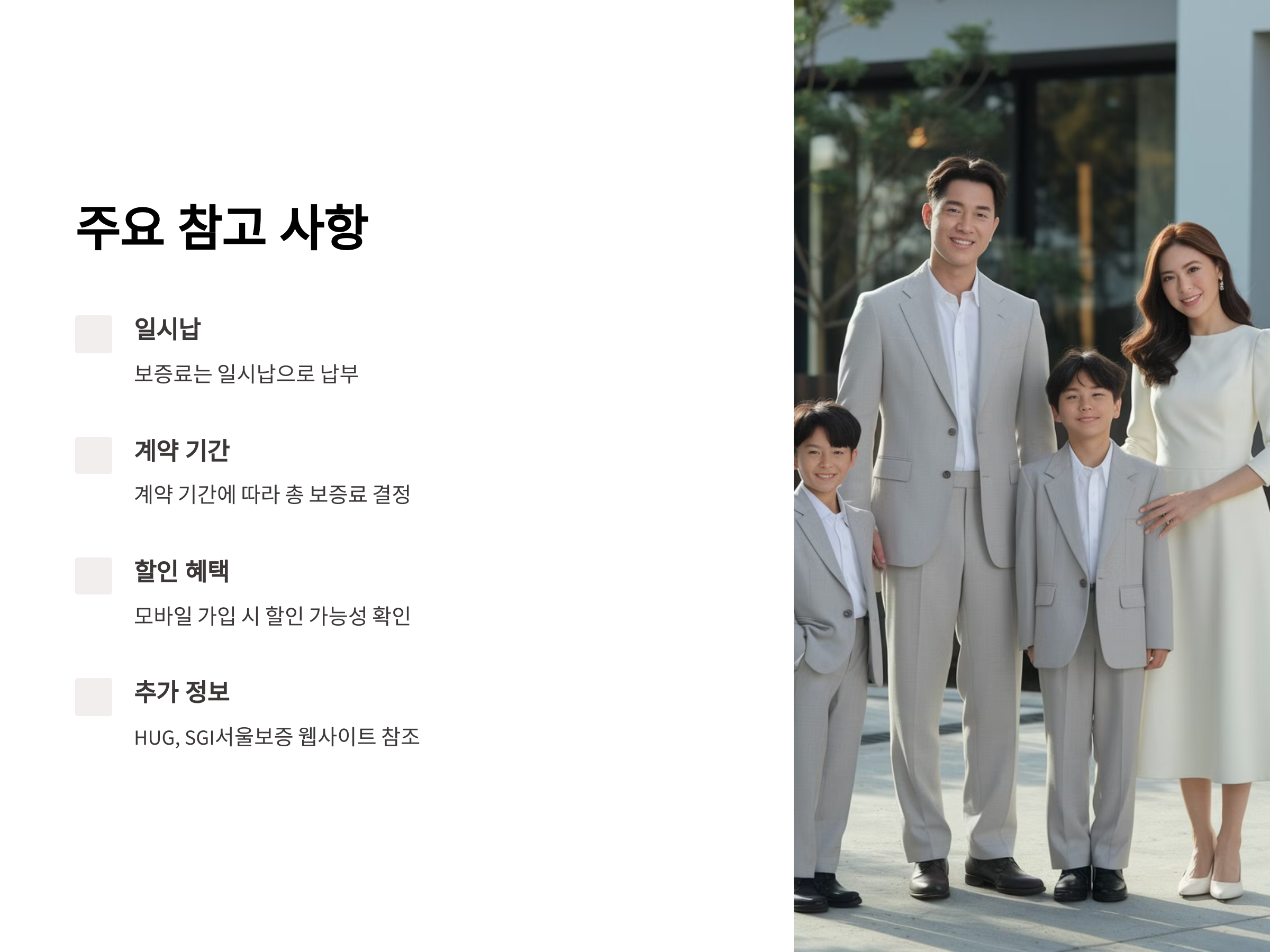 보증료는 일시납으로 납부하며, 계약 기간에 따라 총 보증료가 결정됩니다. 또한, 모바일로 가입 시 할인 혜택을 제공하는 기관도 있으므로, 이를 활용하여 비용을 절감할 수 있습니다.