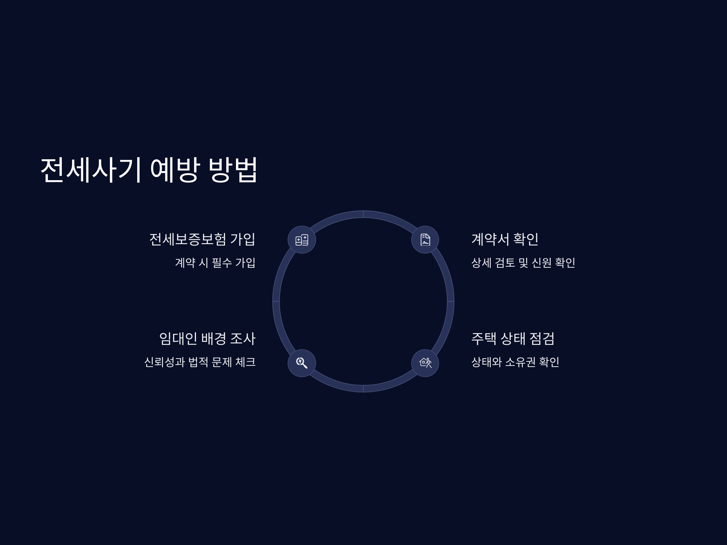 - 전세보증보험 가입: 전세 계약 시 반드시 전세보증보험에 가입하여 피해를 최소화합니다.