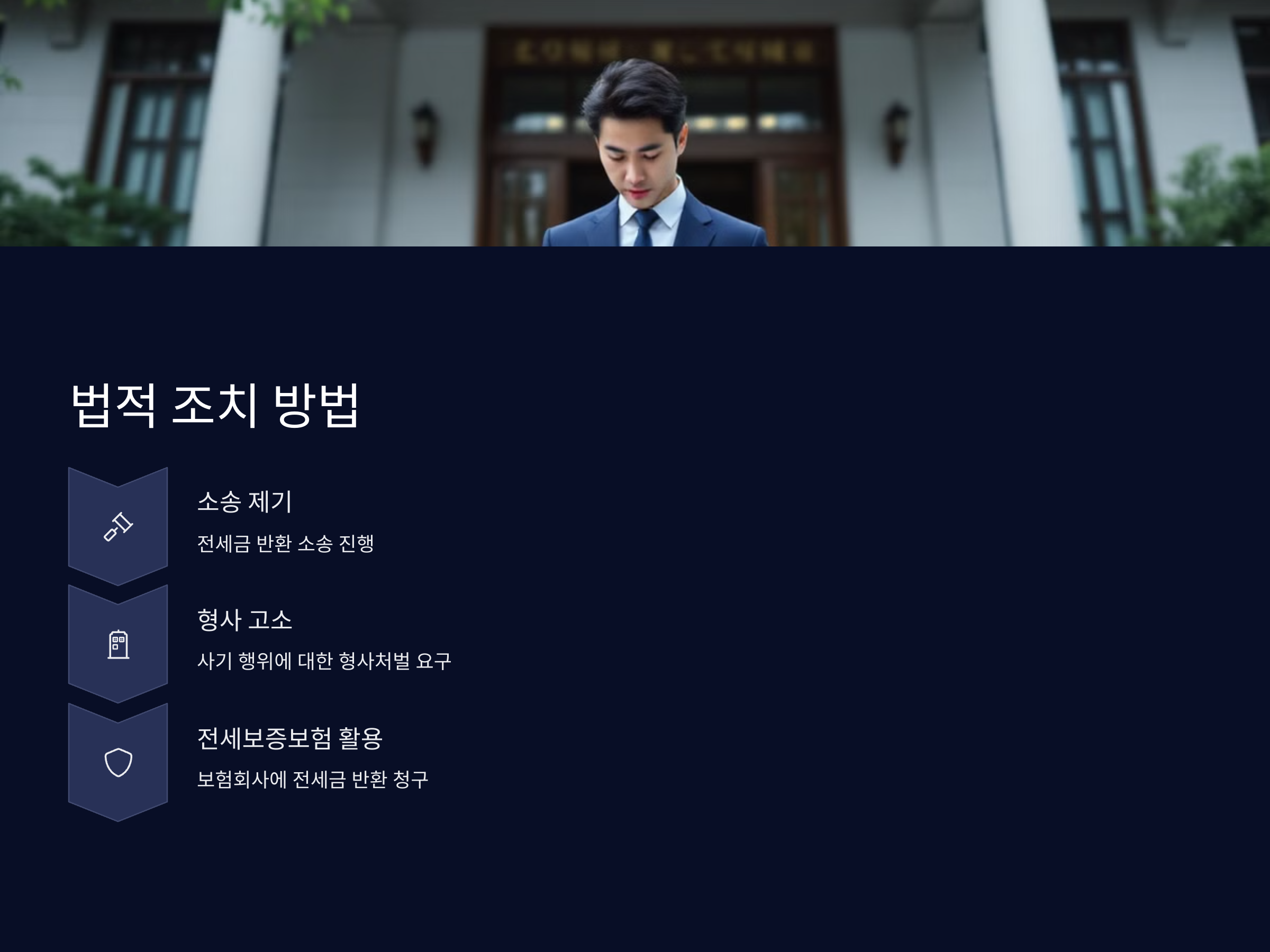 - 법적 조치: 민사소송 및 형사고소를 통해 임대인에게 전세금을 반환받을 수 있습니다.