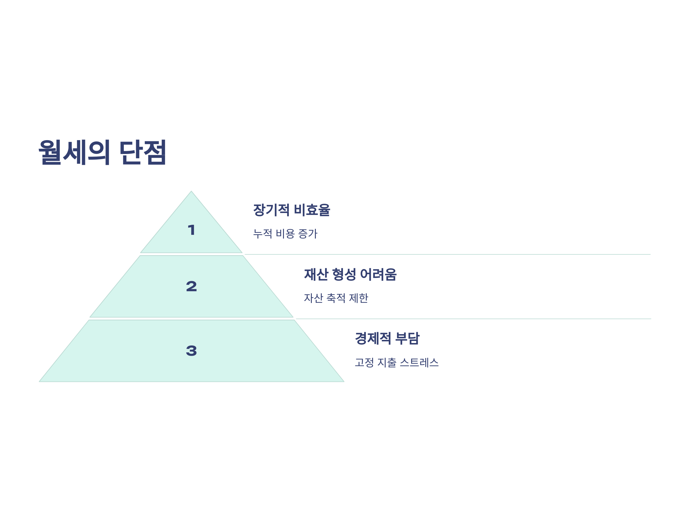 - 장기적으로 비효율적 비용: 매달 고정적으로 지출되는 월세는 누적되면 큰 비용이 됩니다.