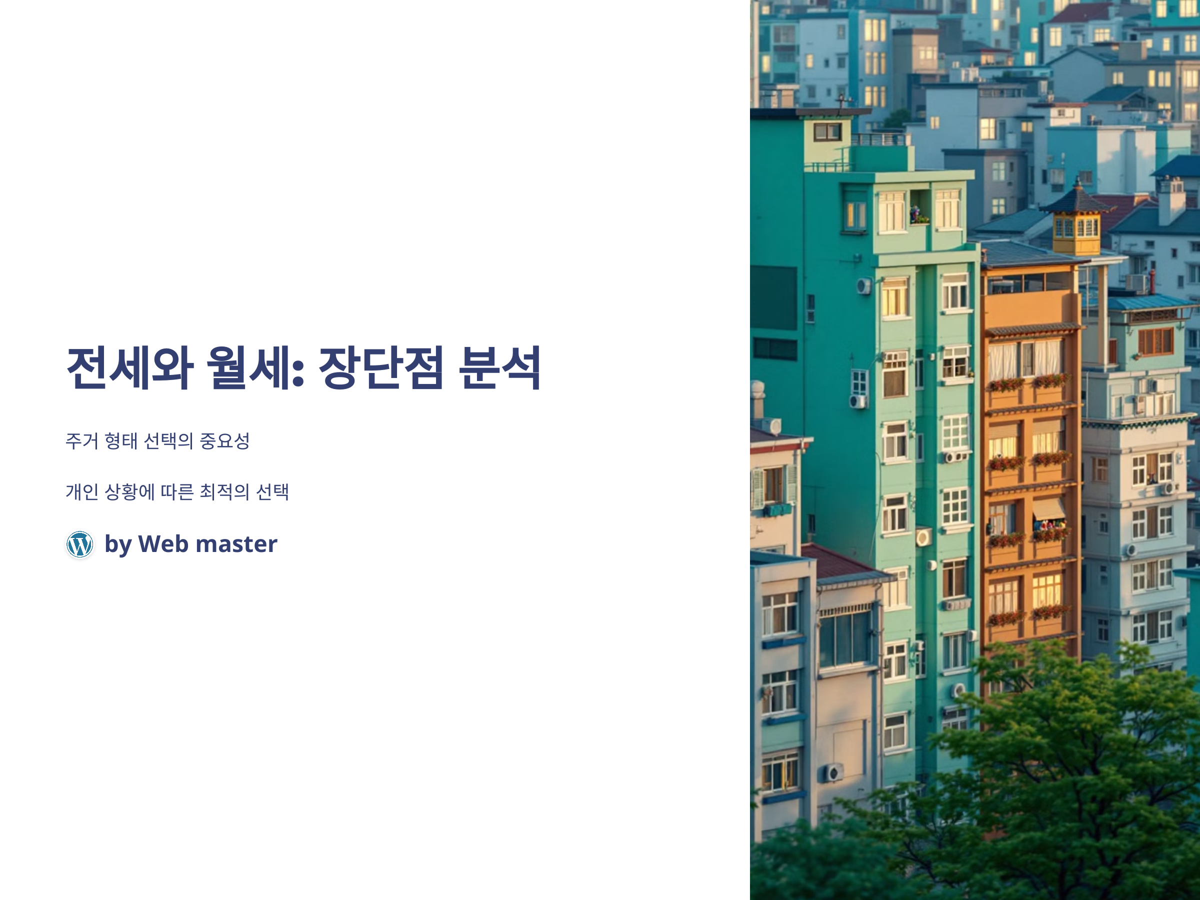 전세와 월세는 각각의 장단점이 뚜렷하므로, 개인의 재정 상황, 거주 계획, 부동산 시장 동향 등을 종합적으로 고려하여 선택하는 것이 중요합니다. 특히, 최신 부동산 시장 정보를 지속적으로 확인하고, 계약 시 주의사항을 철저히 검토하여 안전하고 경제적인 주거 선택을 하시기 바랍니다.