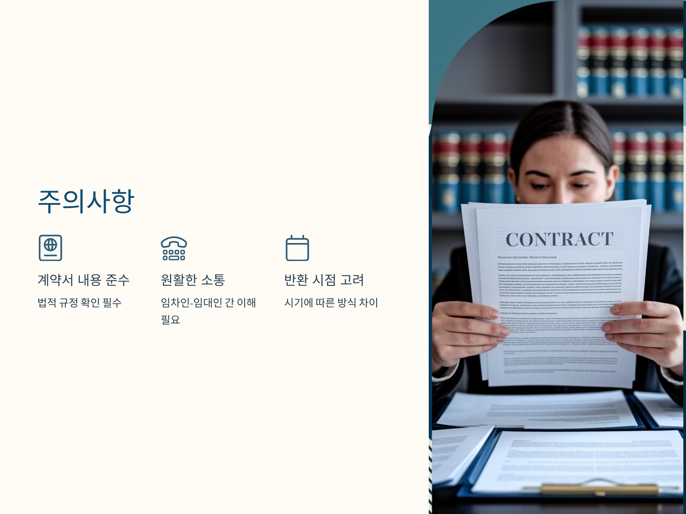 전세 계약에서 계약금 반환을 요구하는 경우, 반드시 계약서의 내용과 법적 규정을 준수하는 것이 중요합니다. 또한, 계약금을 지불한 후 계약이 정상적으로 종료되지 않는 경우, 계약서를 통해 명확하게 반환 기한과 조건을 확인해야 합니다. 계약금을 반환받는 과정에서 중요한 점은 바로 임차인과 임대인 간의 원활한 소통입니다. 많은 분쟁이 발생하는 이유는 서로의 기대와 이해가 충돌할 때 발생하기 때문입니다.