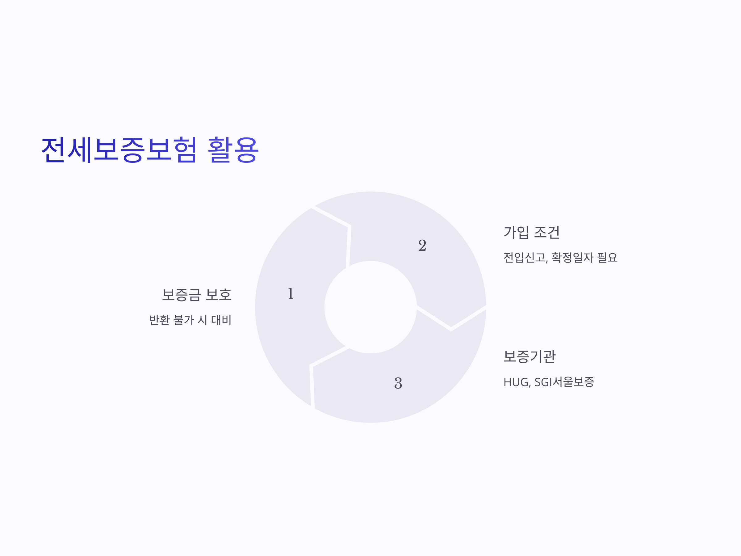 전세보증보험에 가입하면 집주인이 보증금을 반환하지 못하는 상황에서도 보증금을 보호받을 수 있습니다. 가입을 위해서는 전입신고와 확정일자가 필요하며, 보증료는 임차인이 부담합니다. 대표적인 보증기관으로는 주택도시보증공사(HUG)와 SGI서울보증이 있습니다.