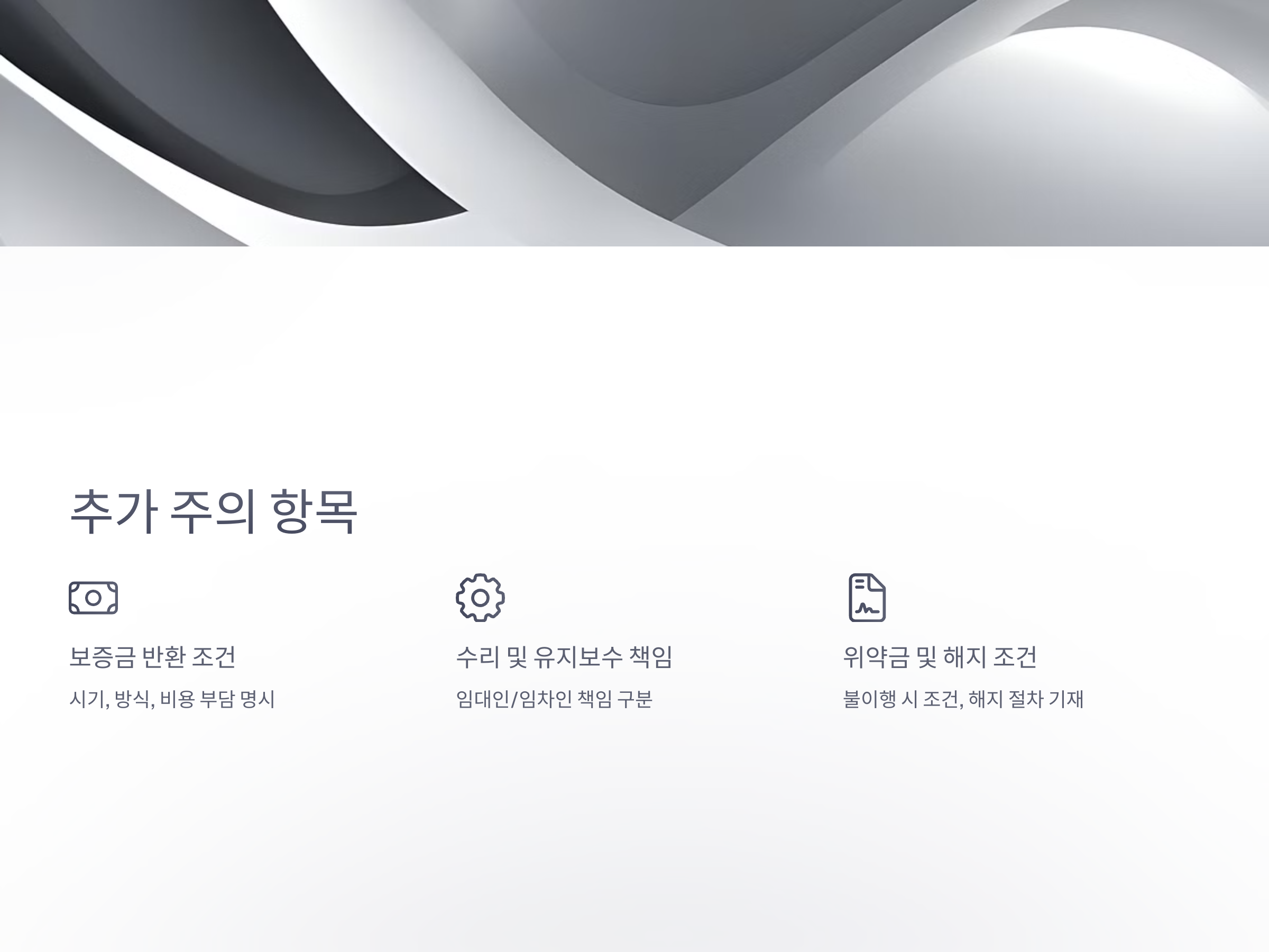 보증금 반환 조건을 정확히 파악하고, 계약서에 명시된 반환일과 방법을 확인해야 합니다. 또한, 계약서에 기재된 세부사항을 꼼꼼하게 점검해 불필요한 분쟁을 피할 수 있도록 해야 합니다.