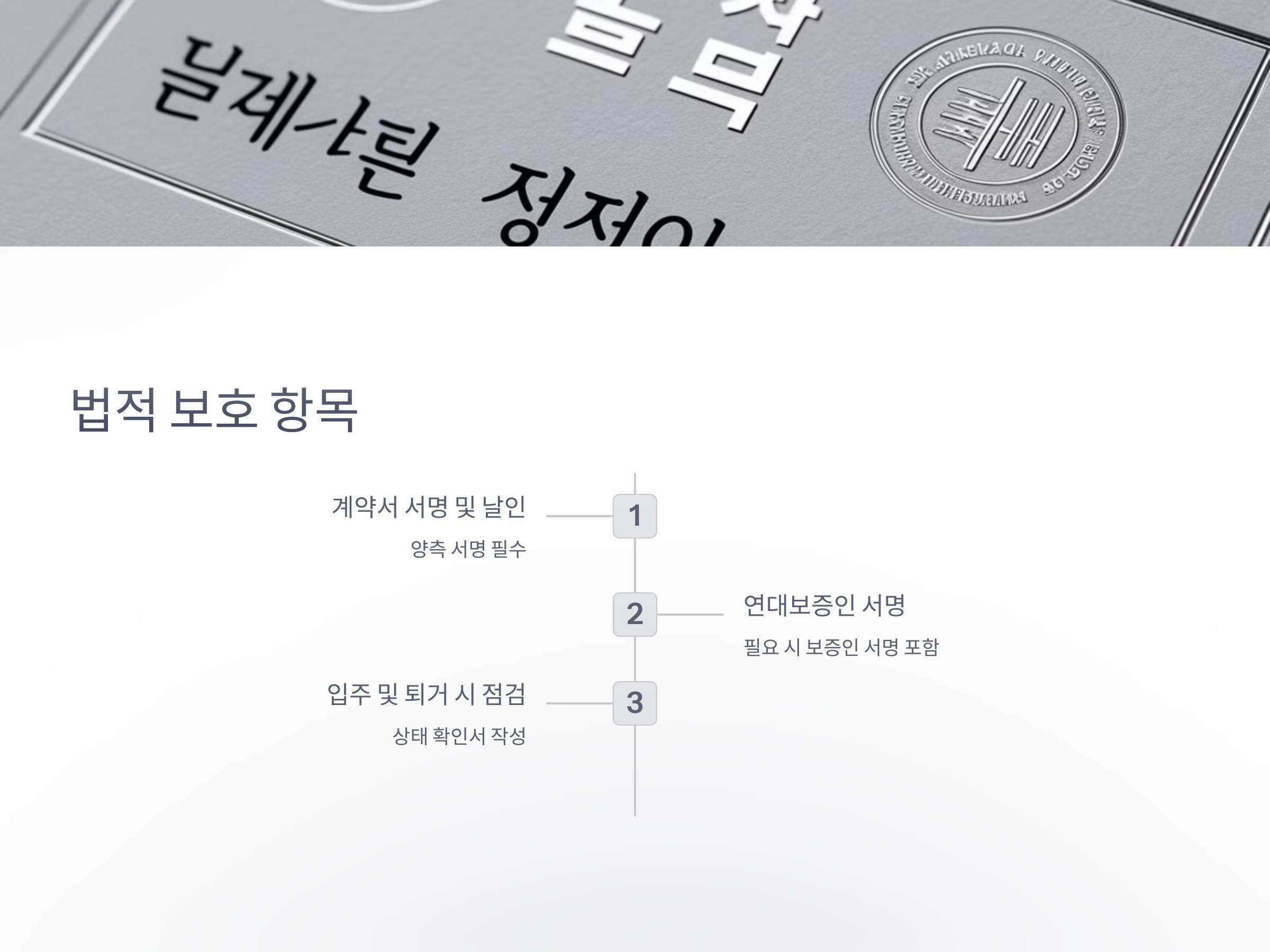 전세 계약서를 작성할 때 법적인 보호를 위한 중요한 항목들도 빠짐없이 기재해야 합니다. 이러한 항목들은 계약 당사자 간의 분쟁을 예방하는 데 큰 도움이 됩니다.