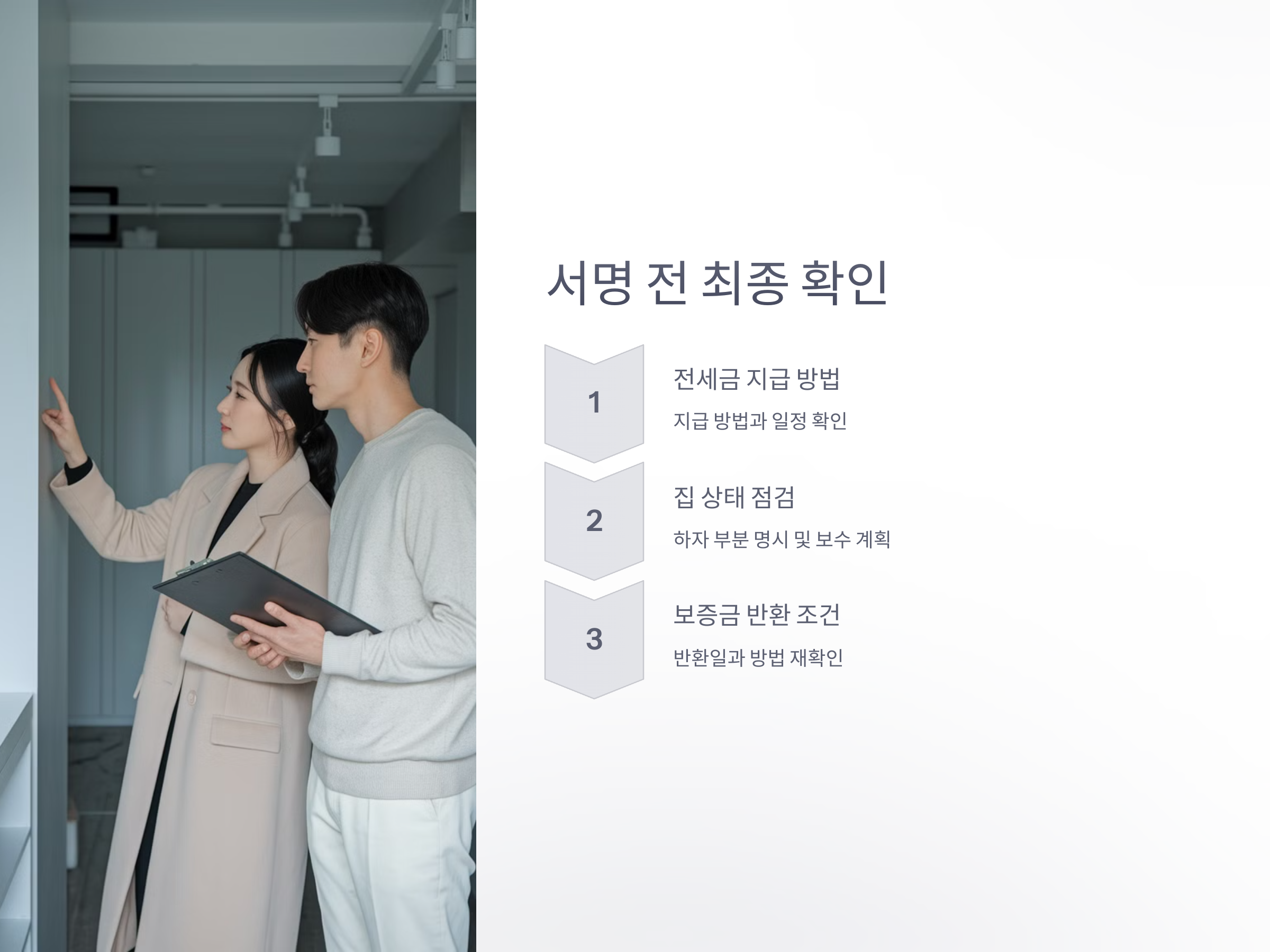 전세 계약서에 서명하기 전에 몇 가지 중요한 사항들을 반드시 확인해야 합니다. 서명 후에는 변경이 어려운 만큼 신중하게 검토해야 합니다.