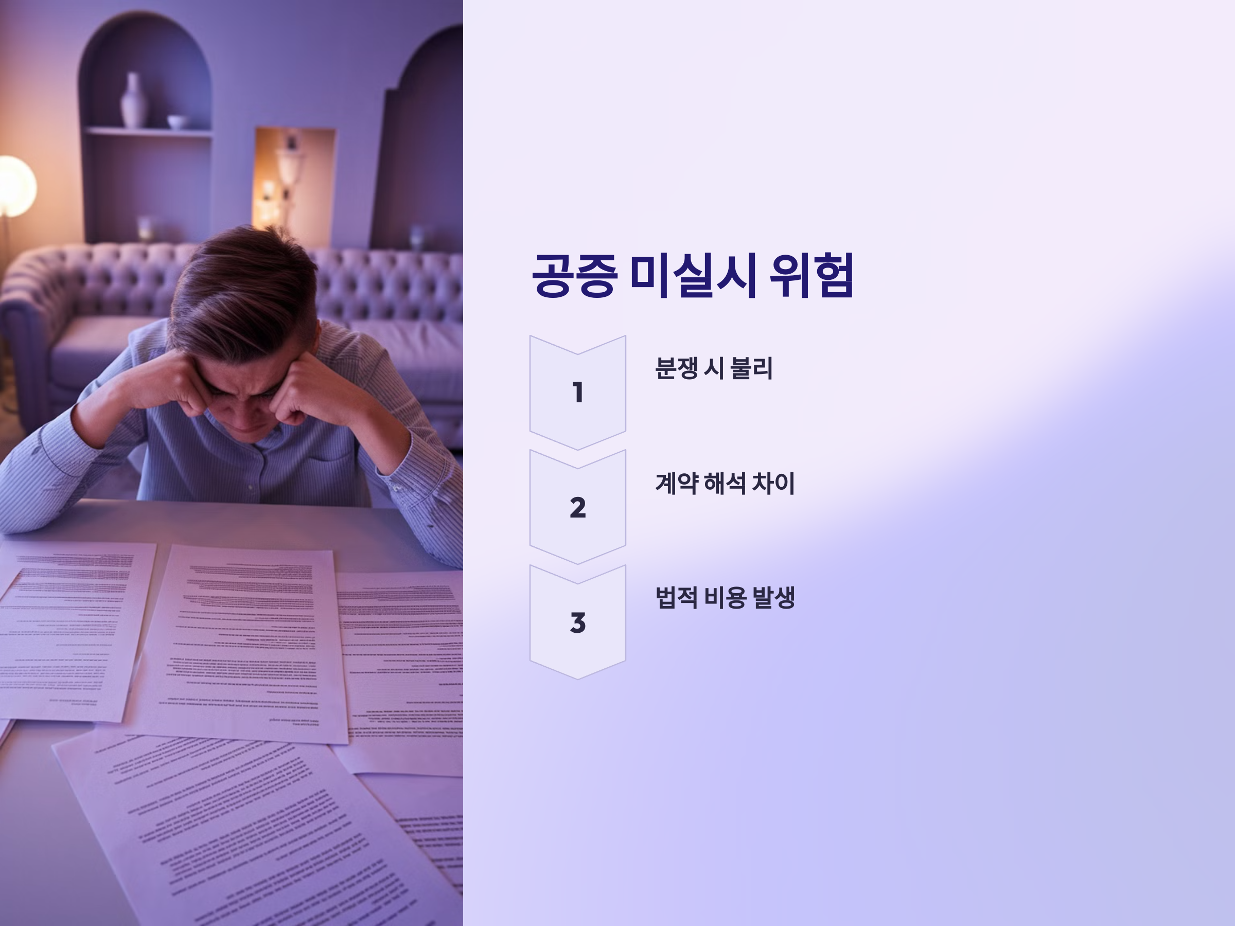 그렇다면 공증을 받지 않는 경우, 계약서의 효력이 약해지거나 분쟁에 불리한 영향을 미칠 수 있을까요? 결론적으로 말하면, 공증이 없다고 해서 계약 자체의 효력에 큰 영향이 있는 것은 아니지만, 분쟁 발생 시 증거로서의 역할이 부족해질 수 있습니다. 특히, 임대인과 임차인 간에 의견 차이가 발생했을 때, 공증이 되어 있으면 분쟁 해결이 수월해집니다.