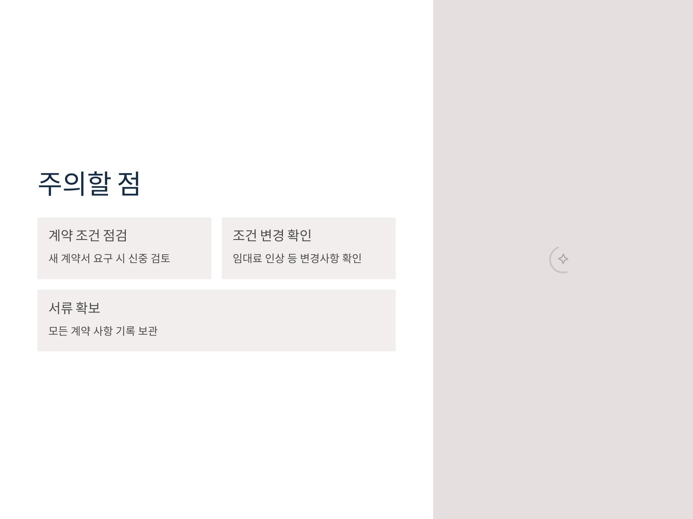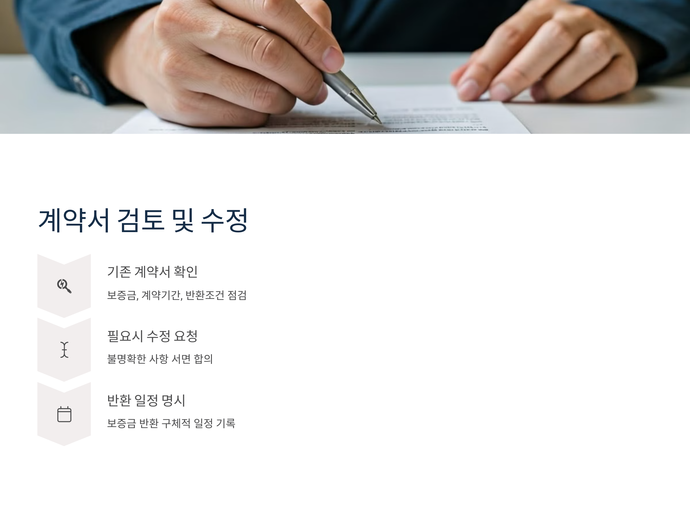 특히 보증금 반환에 대한 구체적인 일정을 명확히 기록해 두면, 만약의 상황에서 법적 보호를 받을 수 있습니다. 계약서에 명시되지 않은 사항들에 대해서는 추가적으로 서면 합의를 진행하는 것이 유리합니다.