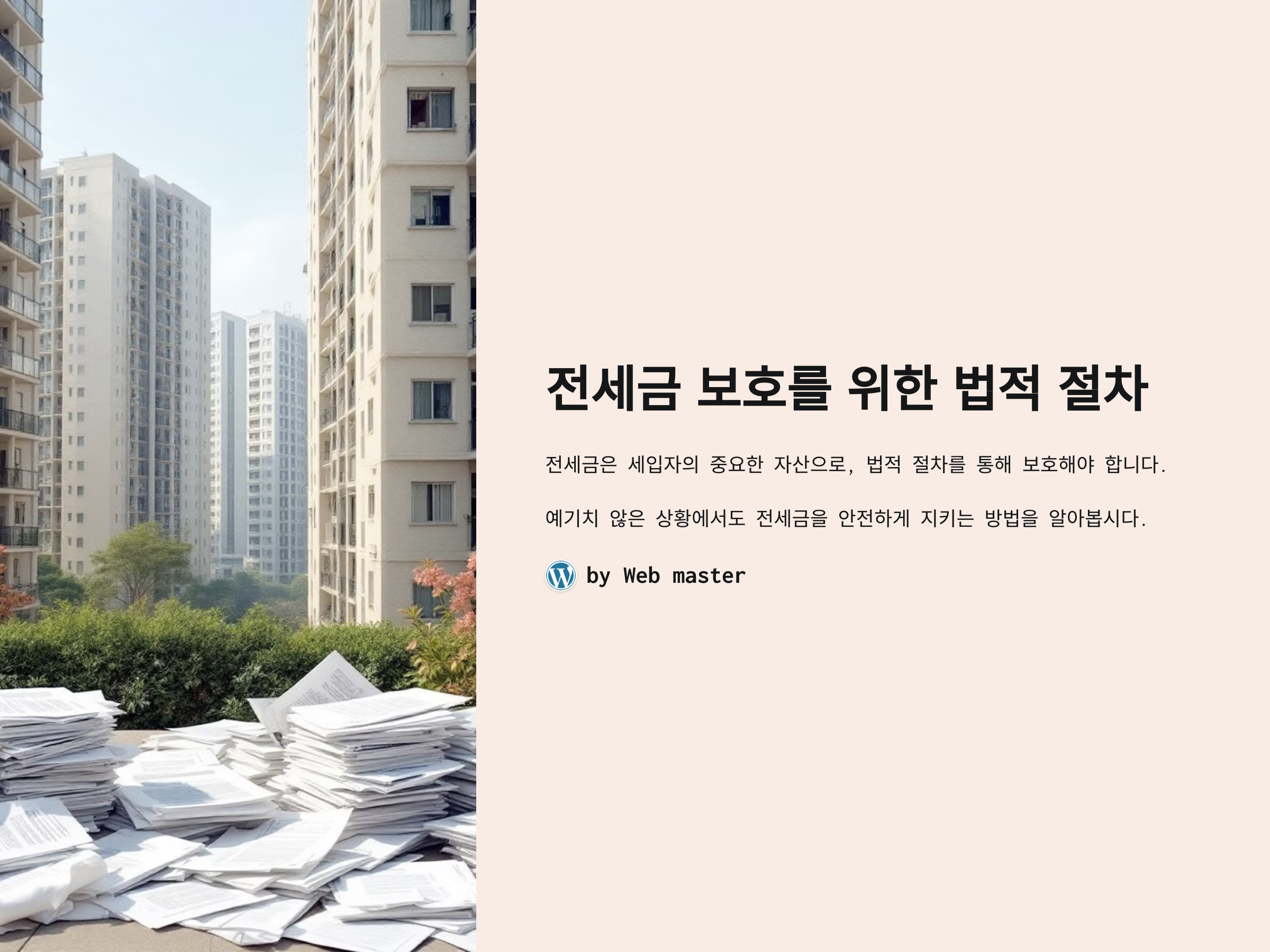 전세 계약을 체결한 후, 가장 걱정되는 부분 중 하나는 바로 전세금 보호입니다. 전세금은 세입자가 큰 금액을 한 번에 지불하는 중요한 자산이기 때문에, 계약서와 법적인 절차가 제대로 갖춰져야만 안심하고 생활할 수 있습니다. 만약 집주인이 계약을 위반하거나, 예기치 않게 파산하거나 집을 매매한다면, 전세금을 돌려받지 못할 위험이 존재합니다. 따라서 전세금을 보호할 수 있는 법적 절차와 방법을 알고 이를 실천하는 것이 매우 중요합니다.